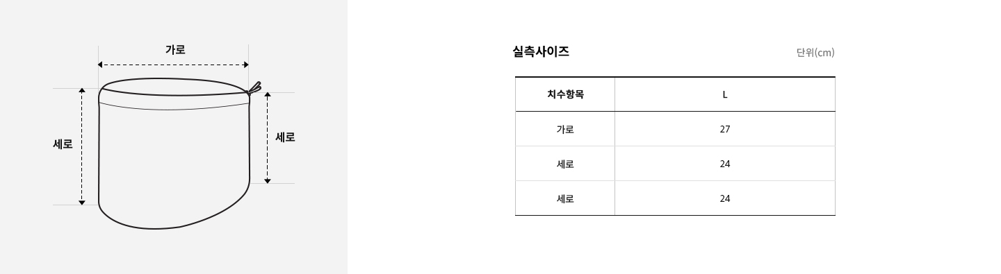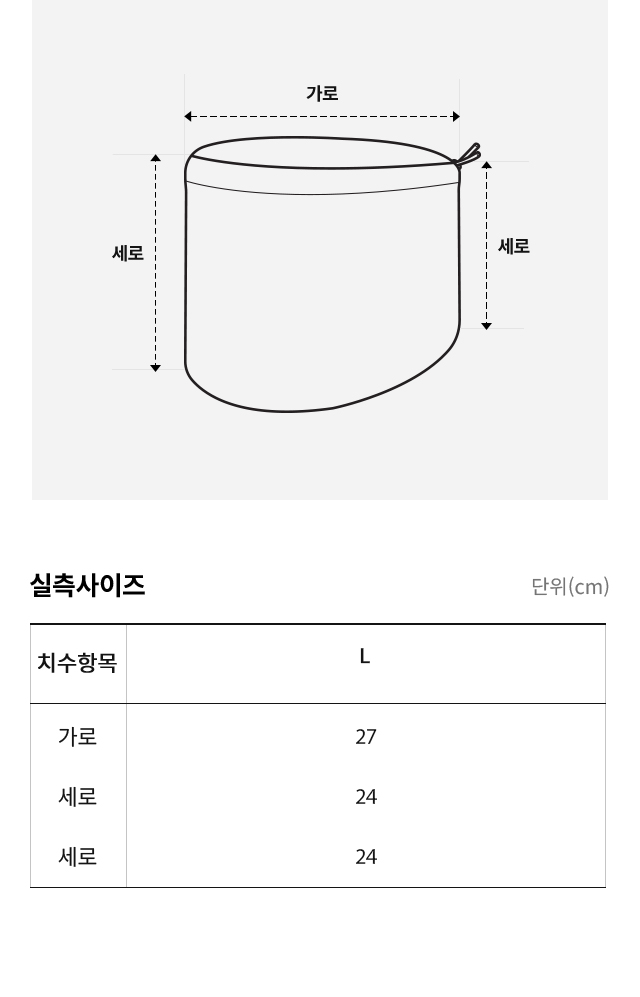 상품의 실제 측정 사이즈나 제품의 소재 특성 및 위치에 따라 약간의 오차가 있을 수 있습니다.