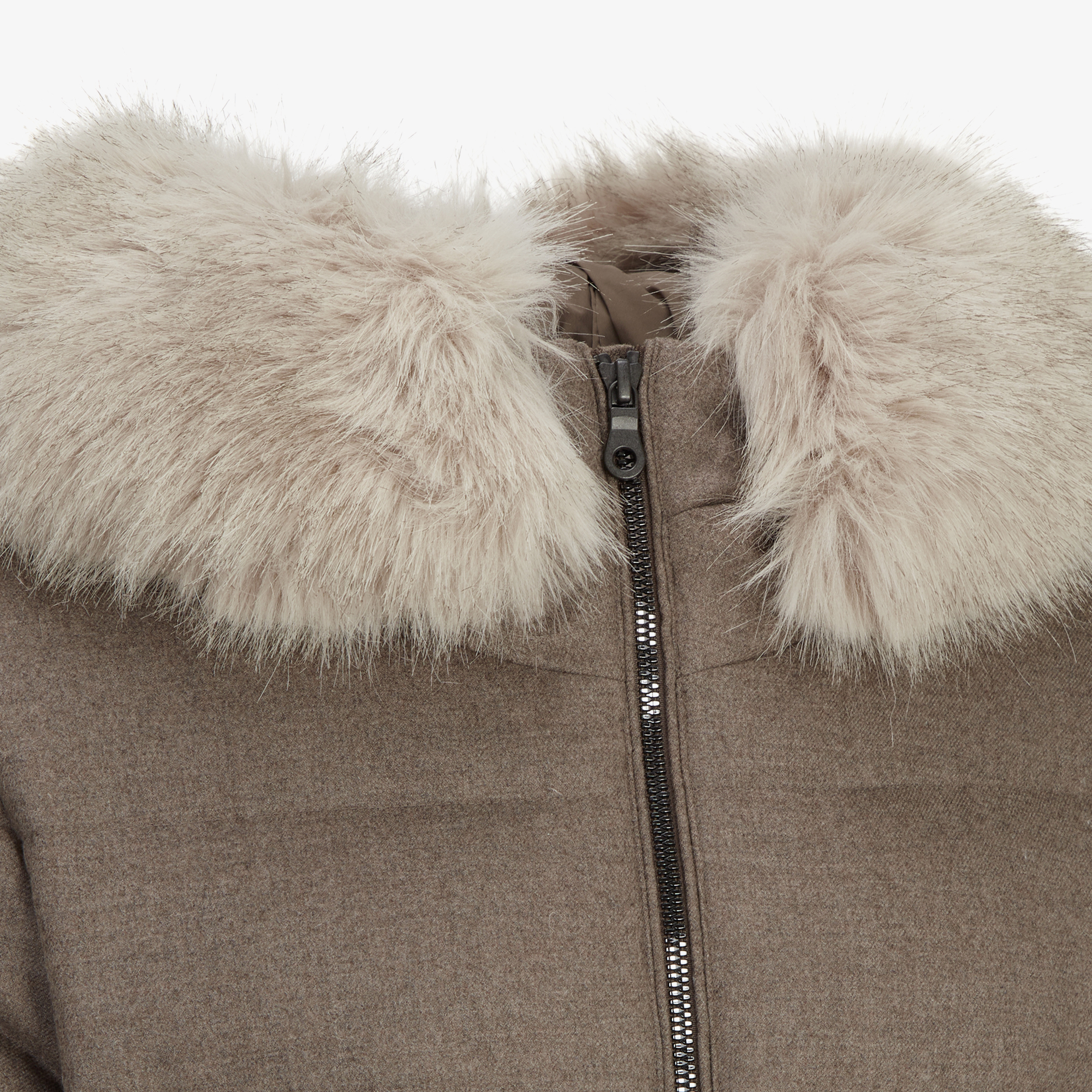 후드 트리밍에 에코 퍼가 사용되었고 탈착이 가능합니다.