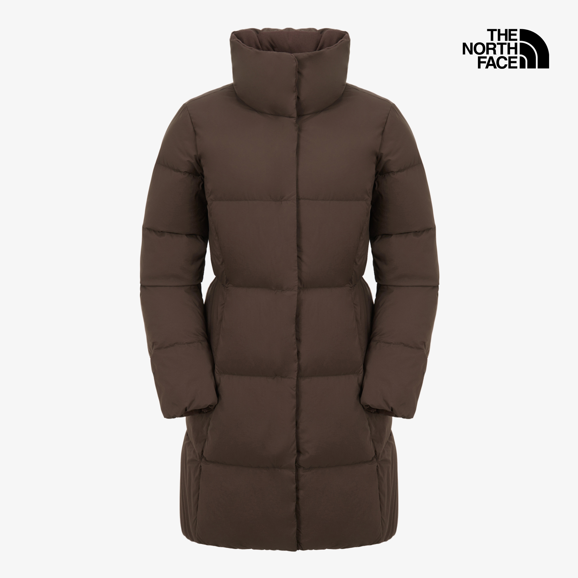 무릎 위로 내려오는 기장에 심플한 디자인을 더한, 여성스러운 무드의 다운 코트입니다.