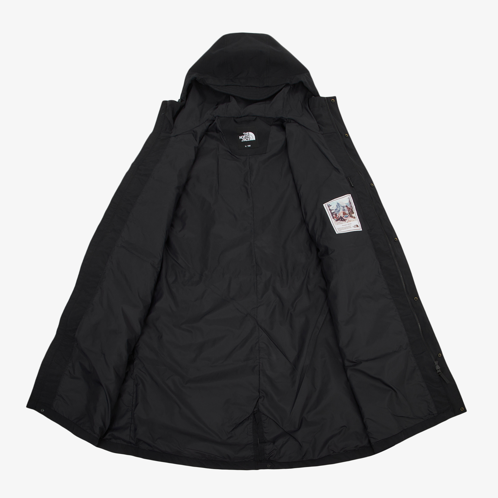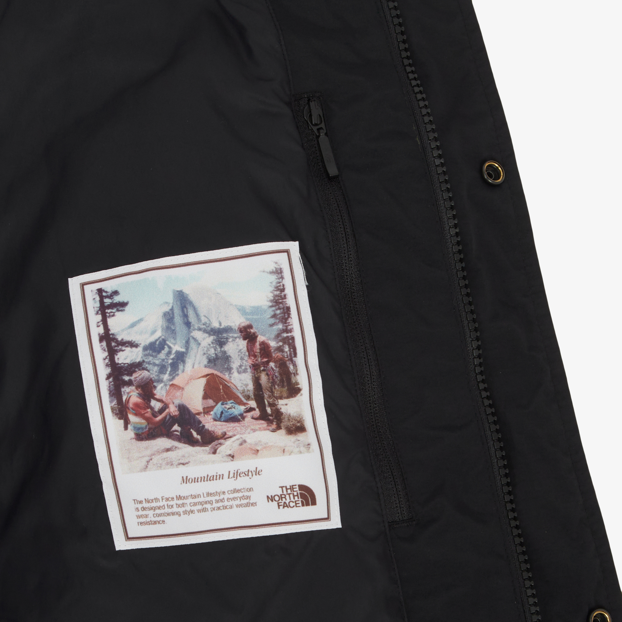 노스페이스의 헤리티지 아이템인 마운틴 자켓에서 영감을 받아 디자인된 피쉬테일 후드 코트 스타일입니다.