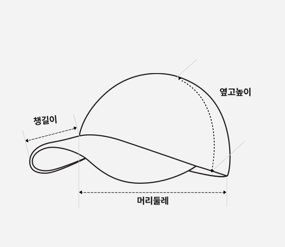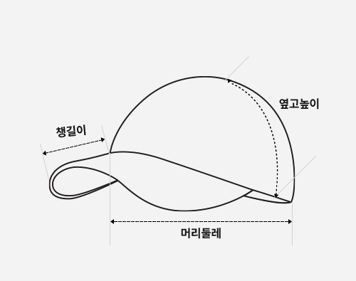 딱딱하지 않은 형태로 두상에 자연스럽게 떨어지는 핏이며, 기본캡보다 완만한 커브의 반커브챙을 사용하여 빈티지한 무드를 더했습니다.