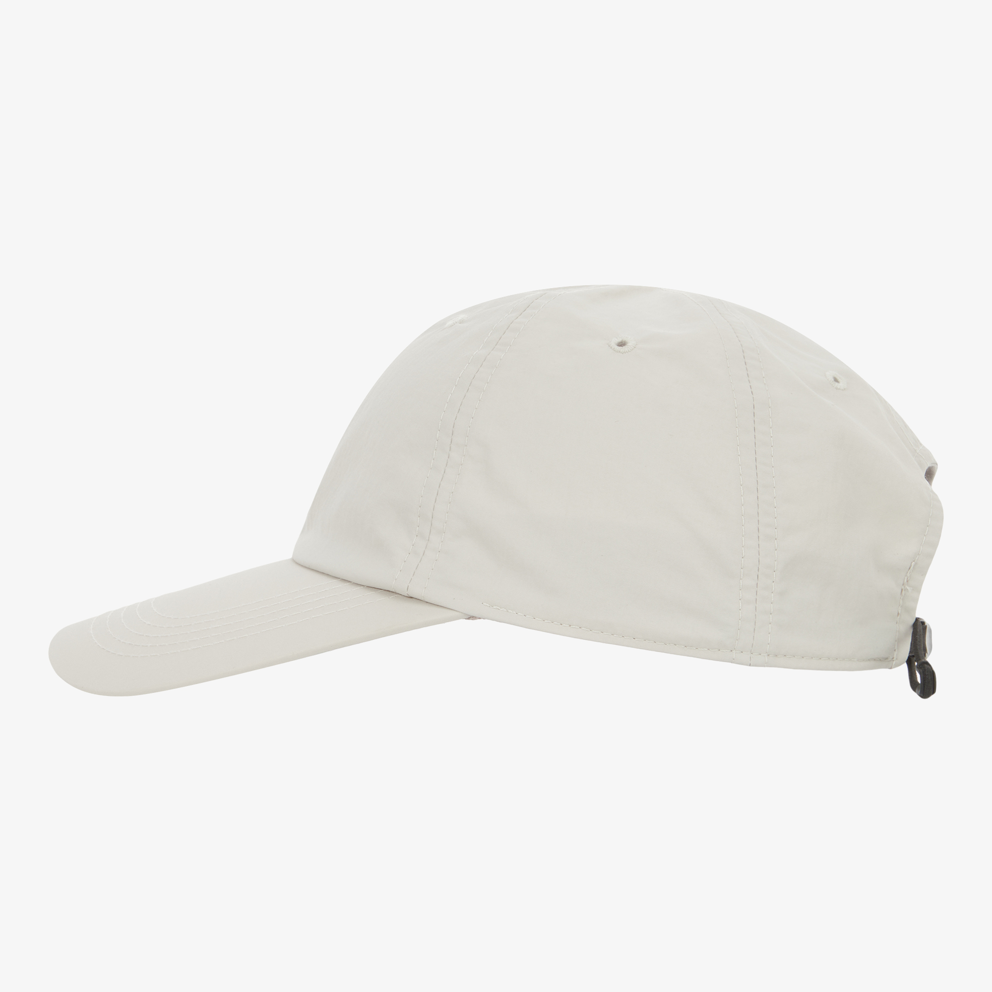 스몰 로고자수와 넓은 챙이 포인트인 빈티지한 무드의 나일론 소재 캡입니다.