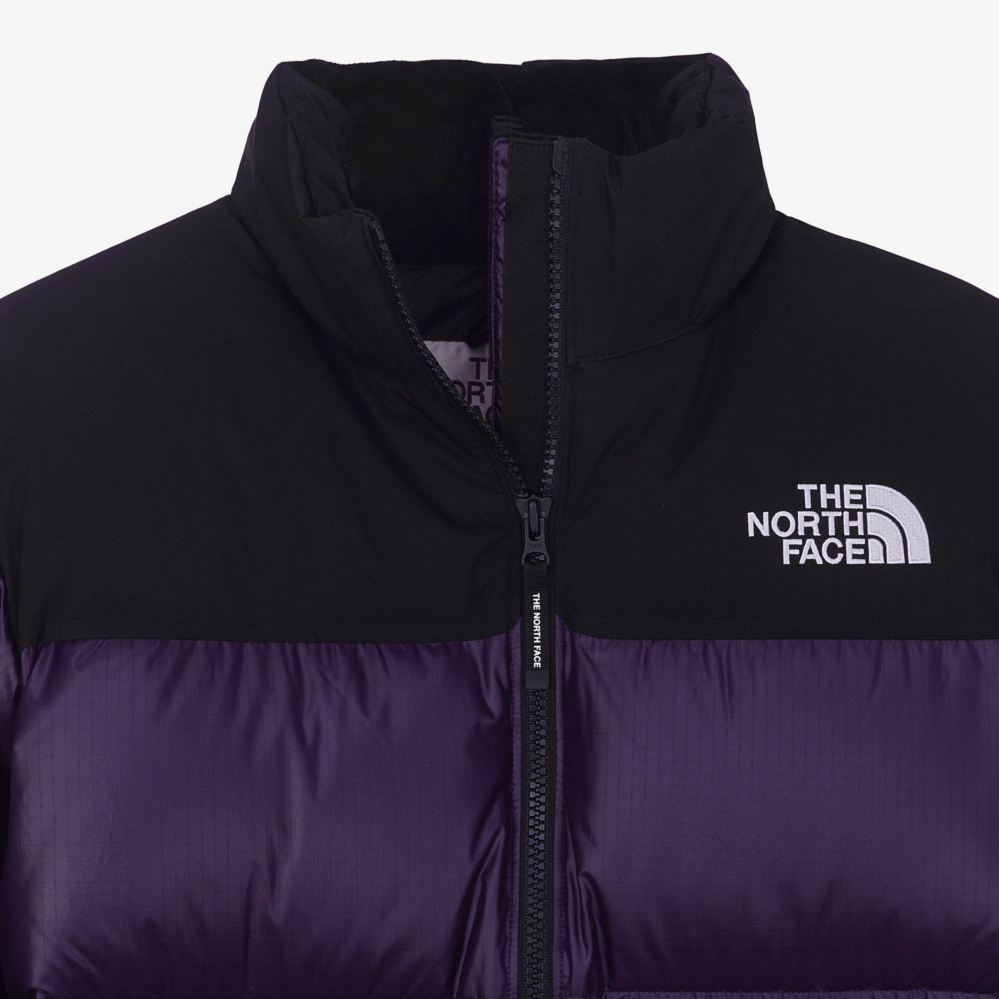 노스페이스 헤리티지인 상단 블록 배색이 포인트인 남녀공용 눕시 다운 자켓 스타일입니다.