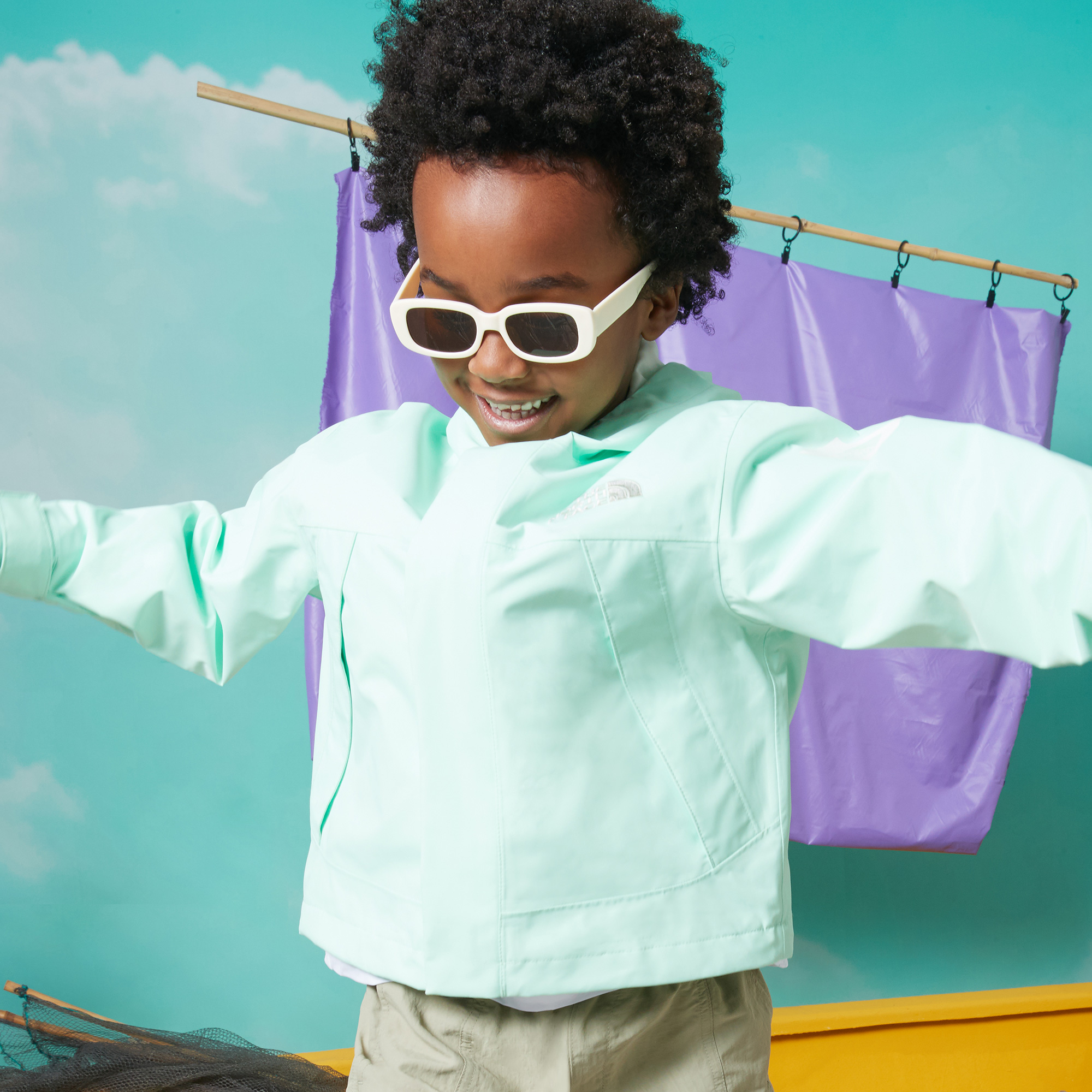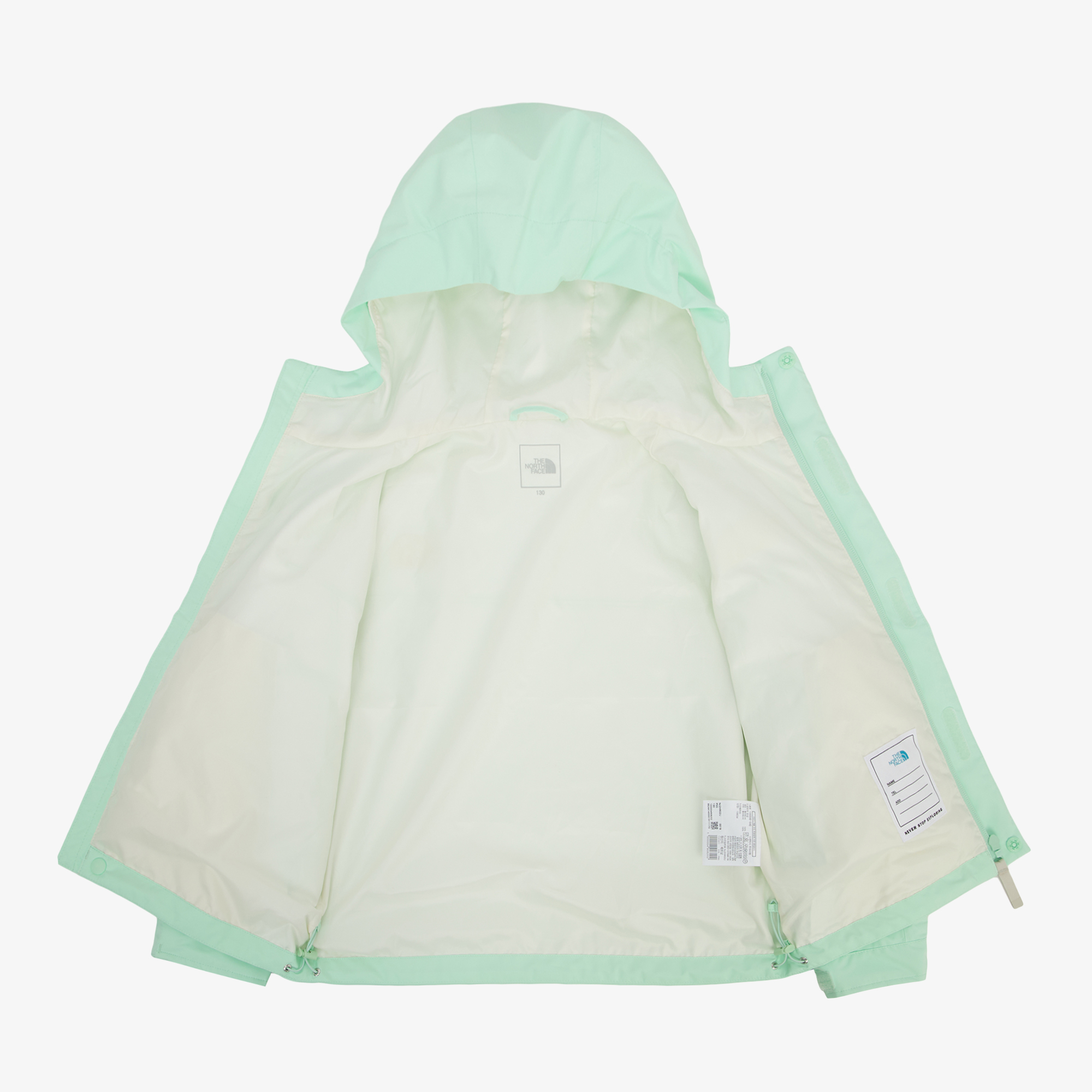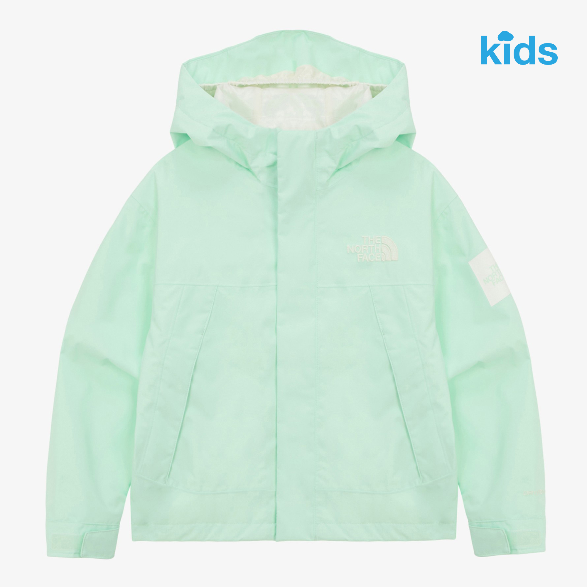 아이들이 비나 눈이 오는 날씨에도 활동적으로 뛰어놀 수 있도록 설계된 DRYVENT 자켓입니다.