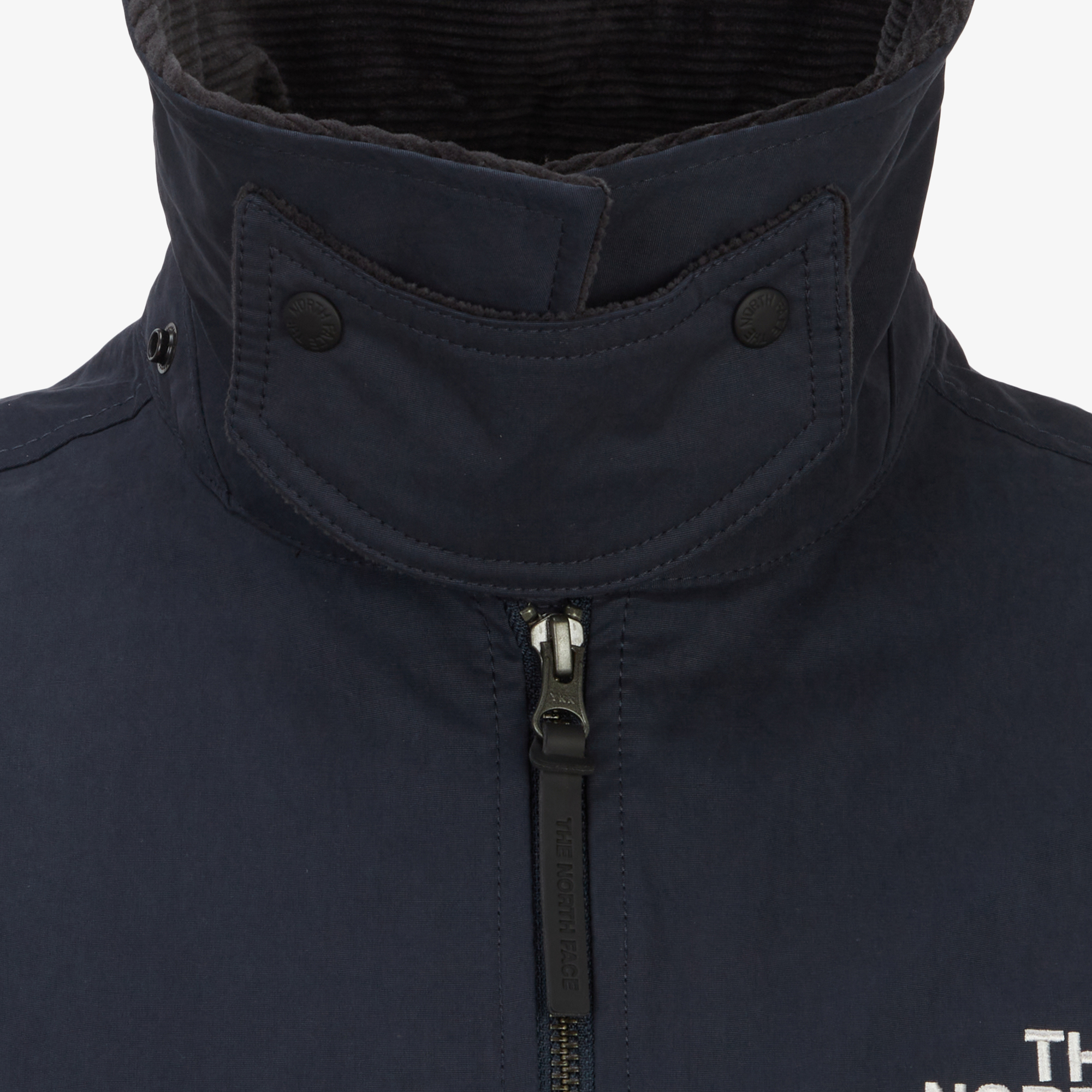 넥카라 앞중심에 더해진 탭 디테일이 바람을 효과적으로 막아줍니다.