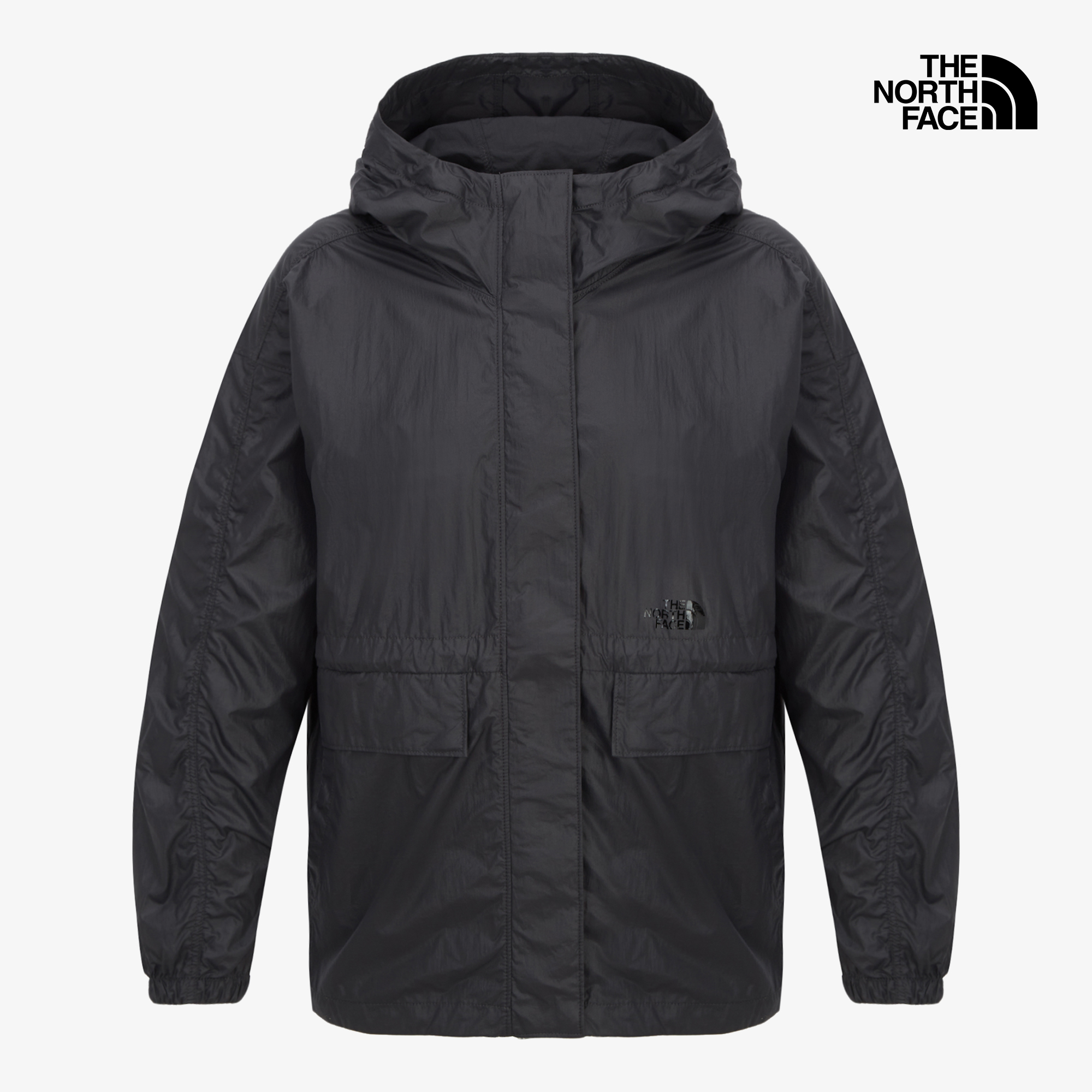 스냅으로 여밀 수 있는 2웨이 수납 포켓이 있고, 후드와 허리 스트링을 조여 핏을 연출할 수 있습니다.