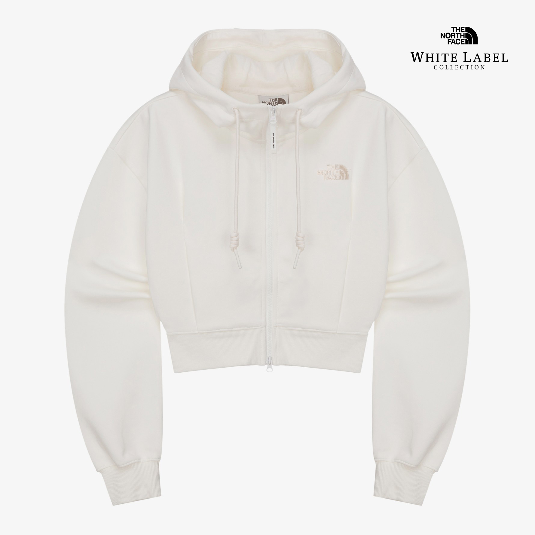 레터링 밴드로 밑단둘레에 포인트를 준 여성 후디 집업으로, 짧은 기장과 밑단을 조이는 이밴드, 가슴부분의 핀턱으로 볼륨감을 살렸습니다.
