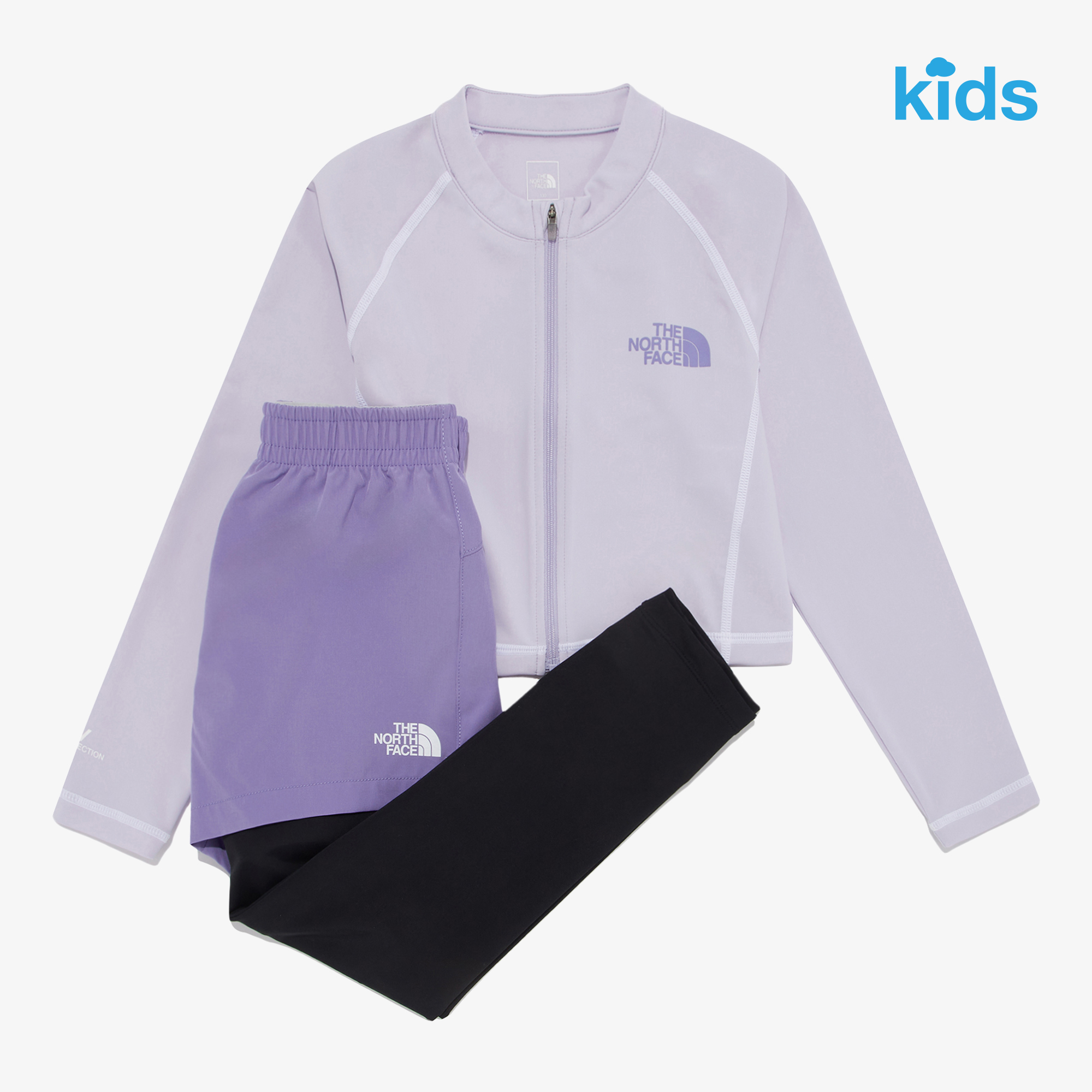 여아용 제품으로 상의 길이가 짧은 크롭기장으로 제작되었습니다.