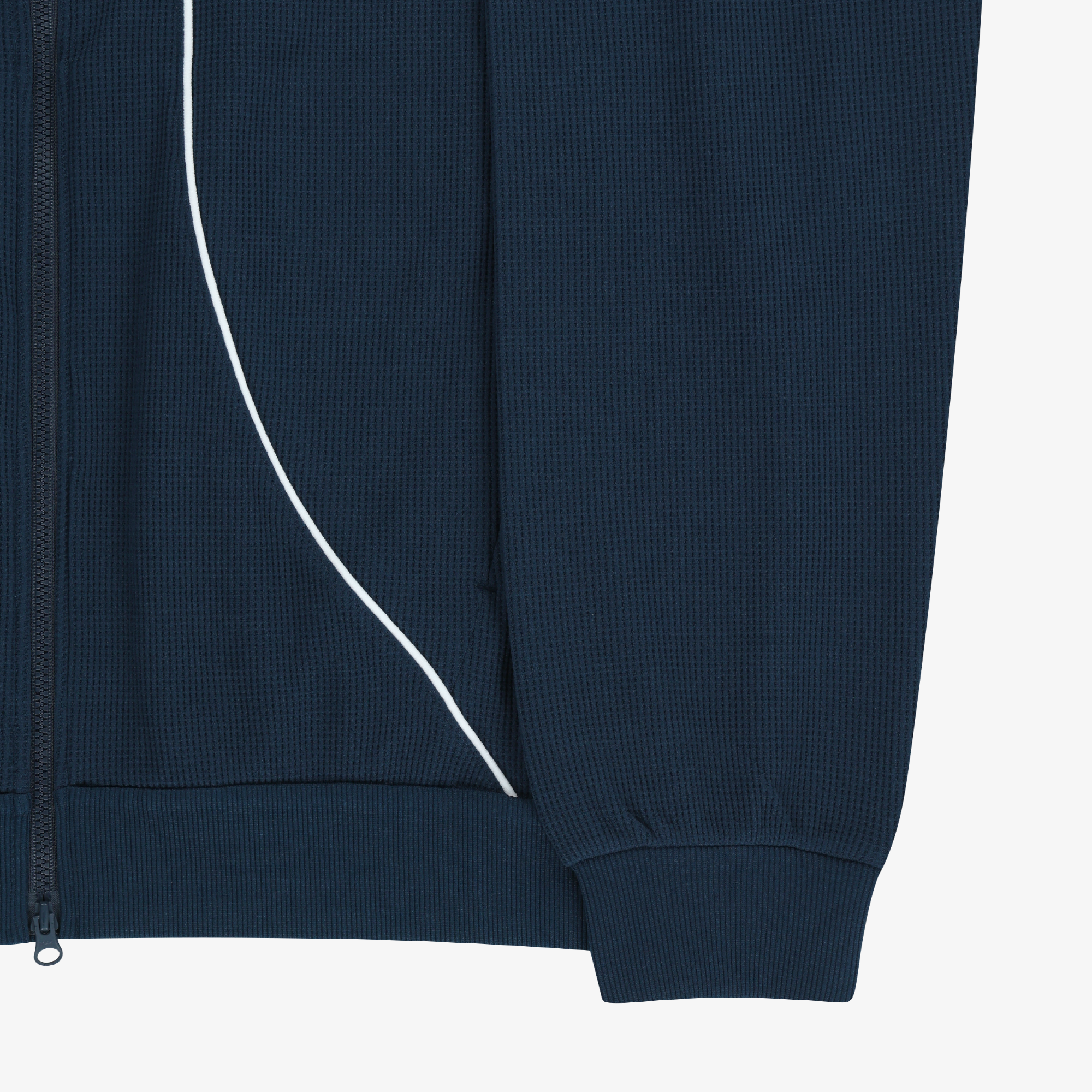 면터치감의 와플 원단을 사용한 집업자켓 제품입니다.