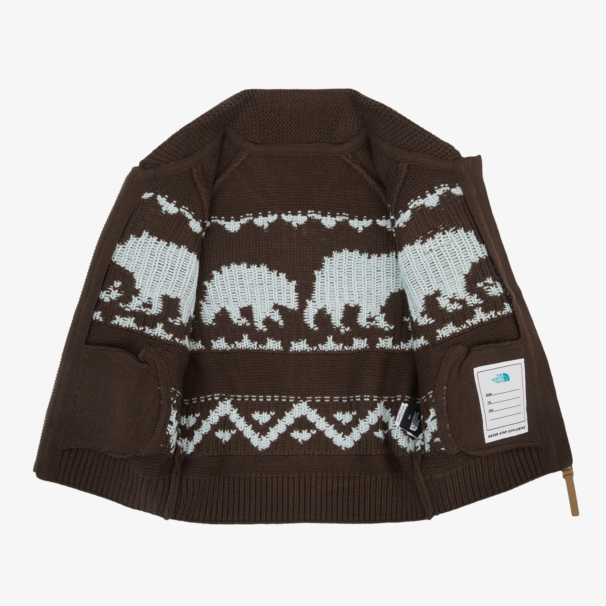 귀여운 곰 자카드가 편직되어 있는 집업 가디건입니다.