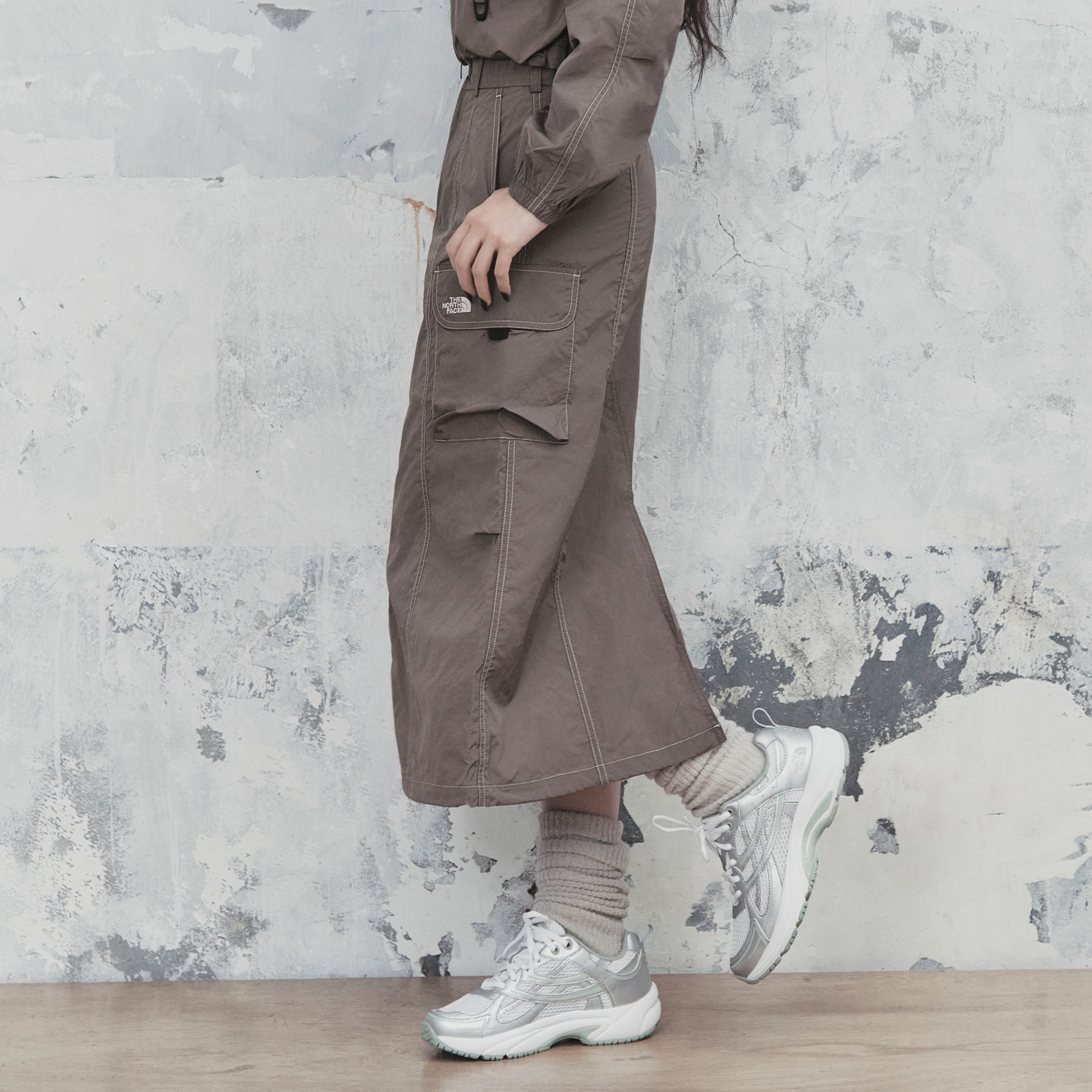 캐주얼 유틸리티 무드의 여성용 경량 스커트로 데일리 착용 가능한 스커트입니다.