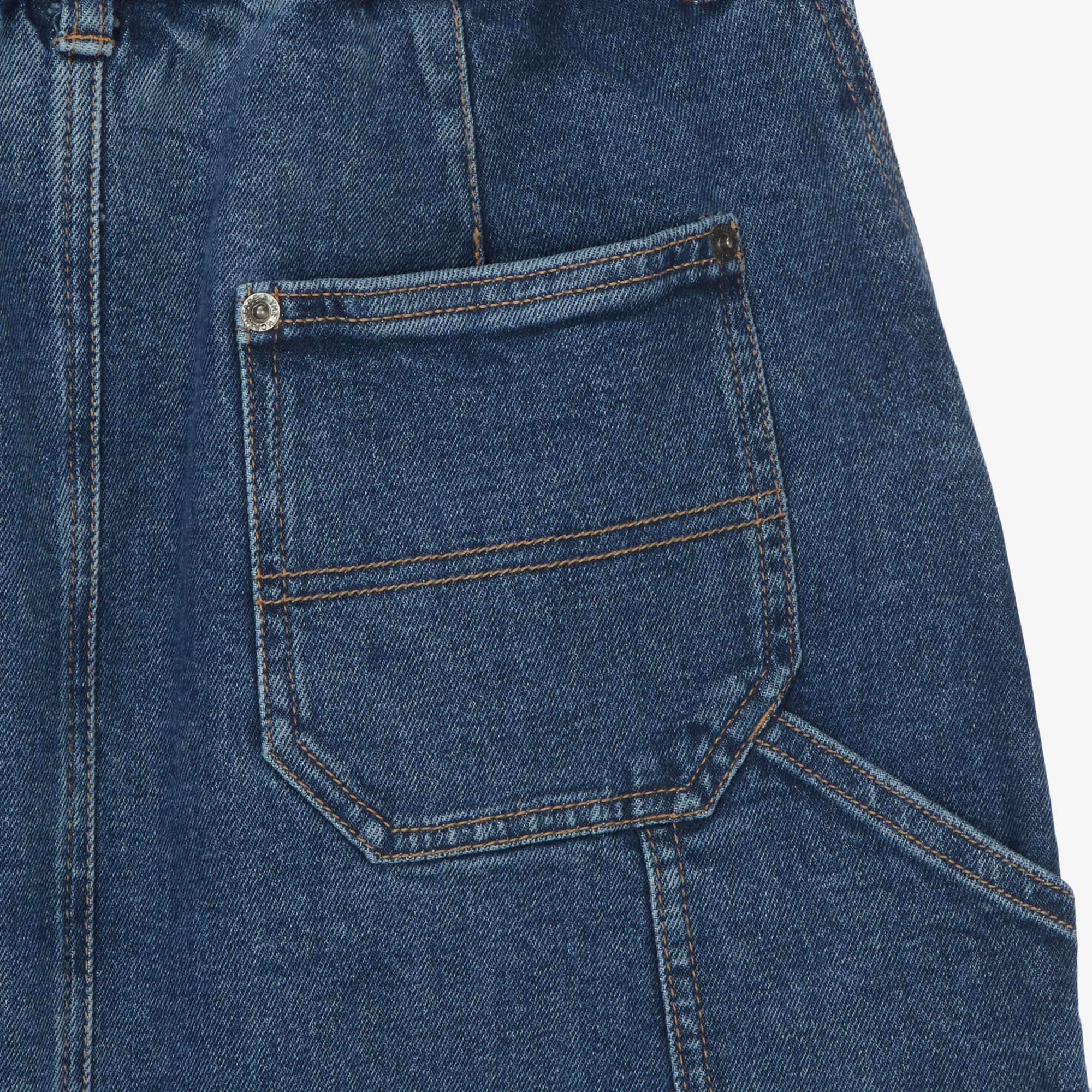 앞판의 패치 포켓과 뒷판 사이드의 미니 포켓, 스트랩 디테일이 더해져 워크웨어 특유의 캐주얼한 감성을 완성했습니다.