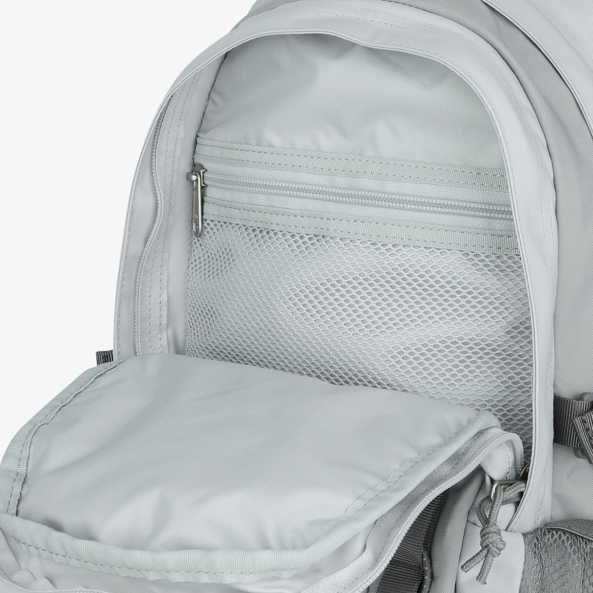 전면의 리플렉티브 스트링은 야간 시인성을 높이고, 의류나 소지품을 걸 수 있는 기능적 디테일로 활용도를 높였습니다.