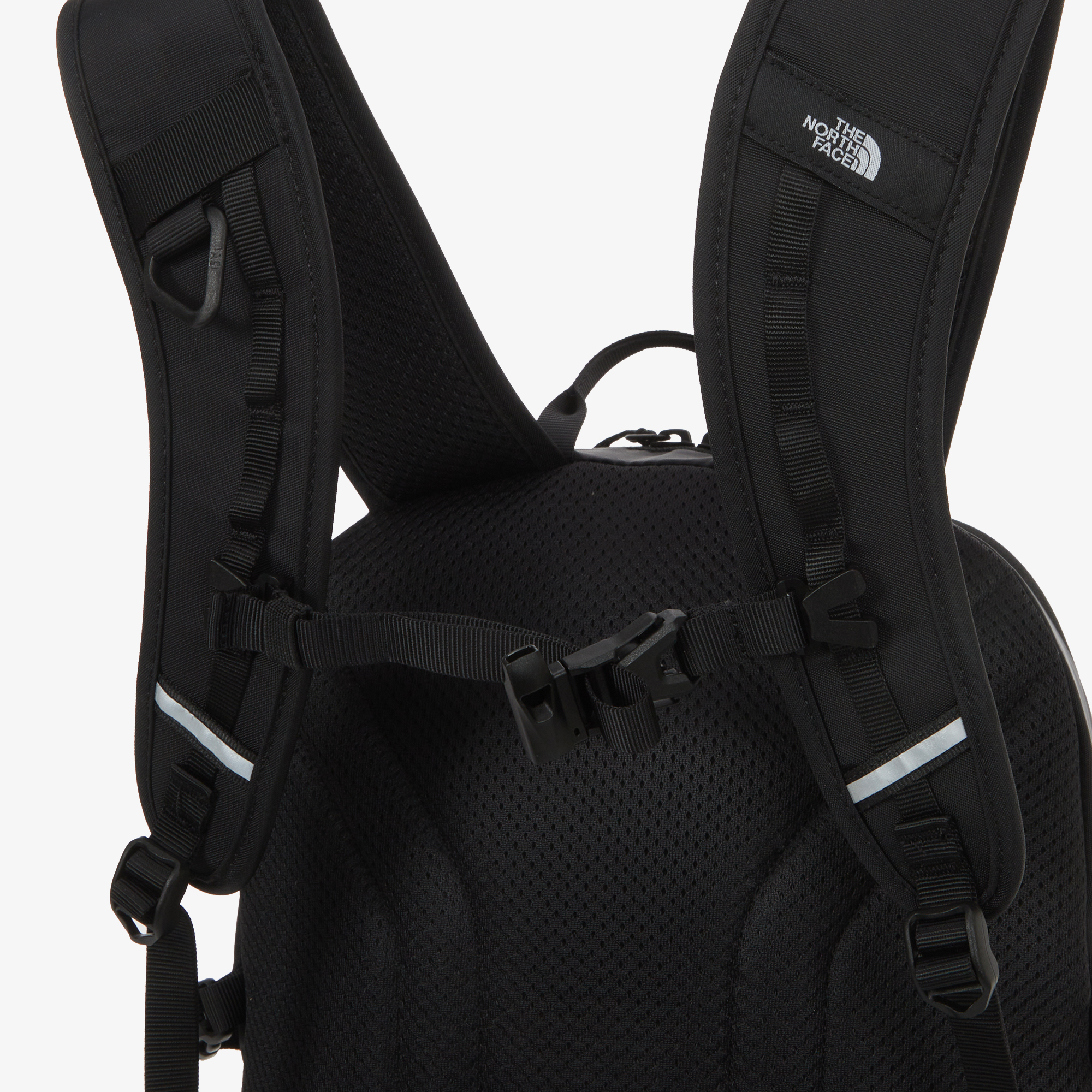 어깨 스트랩에 위치한 탈부착 가능한 가슴 벨트는 착용자의 체형에 맞춰 웨빙에 고정할 수 있으며,