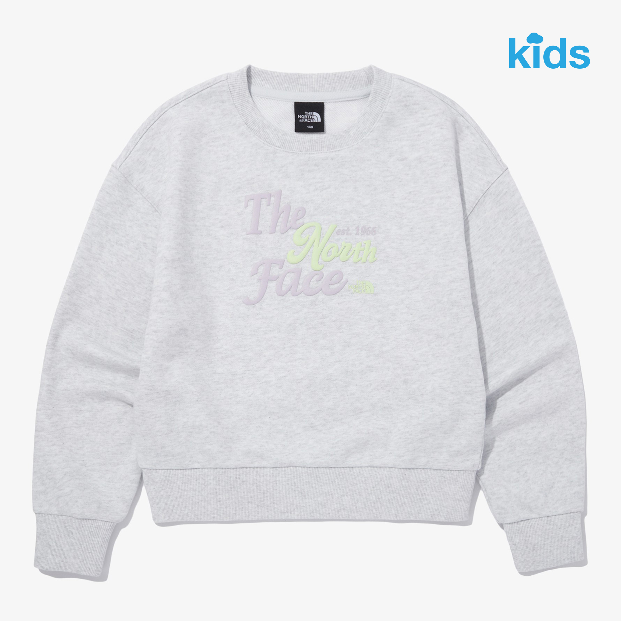 레터링 그래픽 포인트의 여아 크롭 맨투맨 아이템입니다.