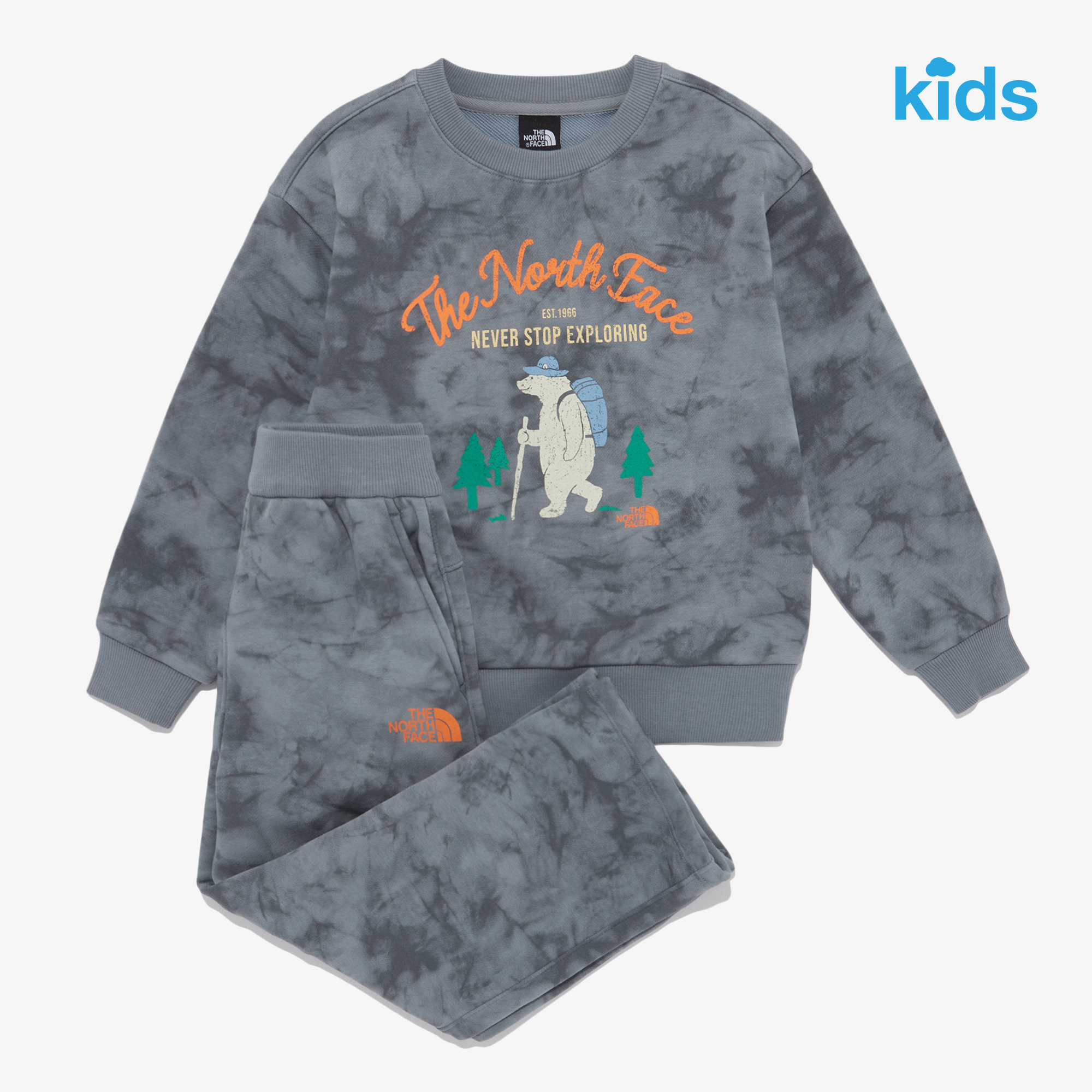 타이다잉 프린트를 활용한 스웻셔츠 상의와 와이드 스트레이트 핏 팬츠로 구성된 set 아이템입니다.