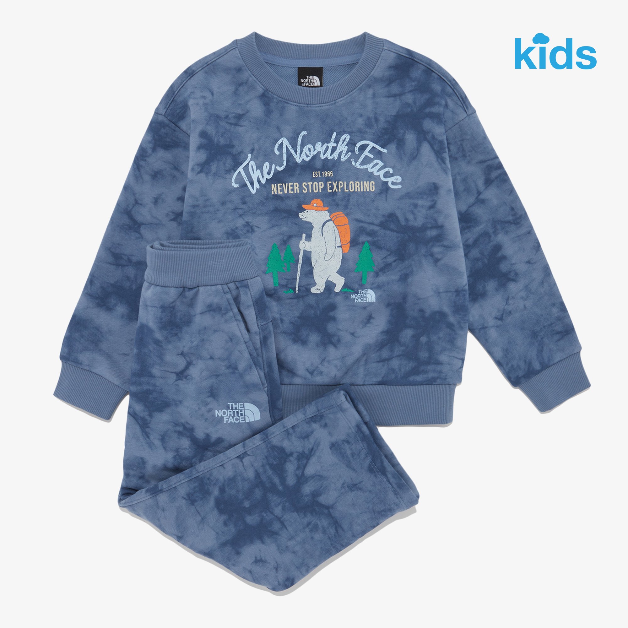 타이다잉 프린트를 활용한 스웻셔츠 상의와 와이드 스트레이트 핏 팬츠로 구성된 set 아이템입니다.