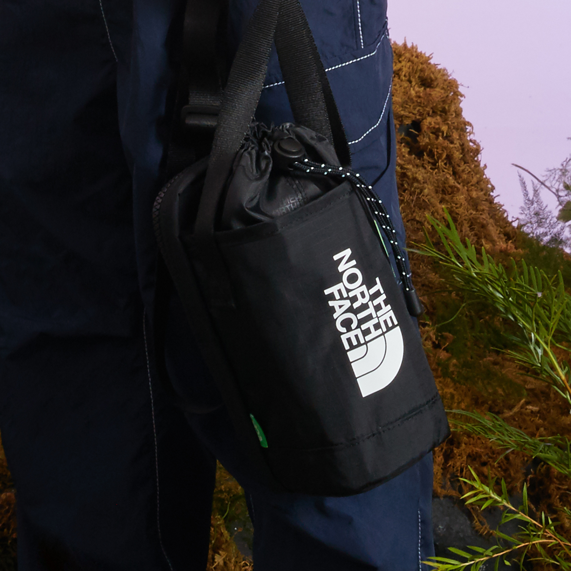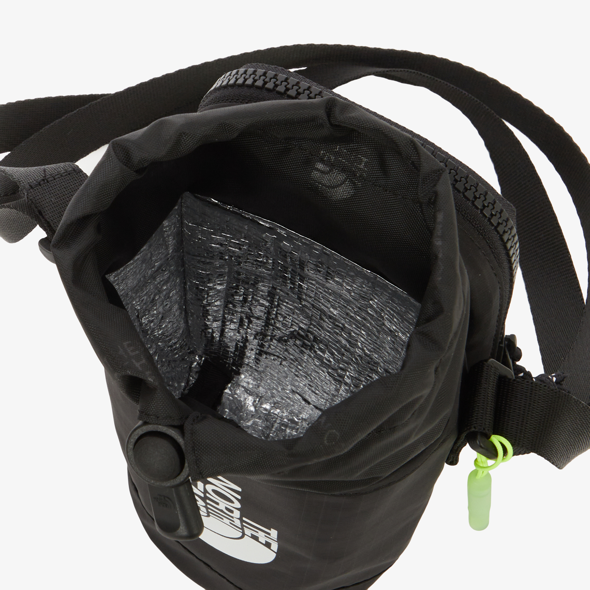 물통가방 입구의 스트링을 조여서 내용물이 빠져나오지 않게 여밀 수 있습니다.