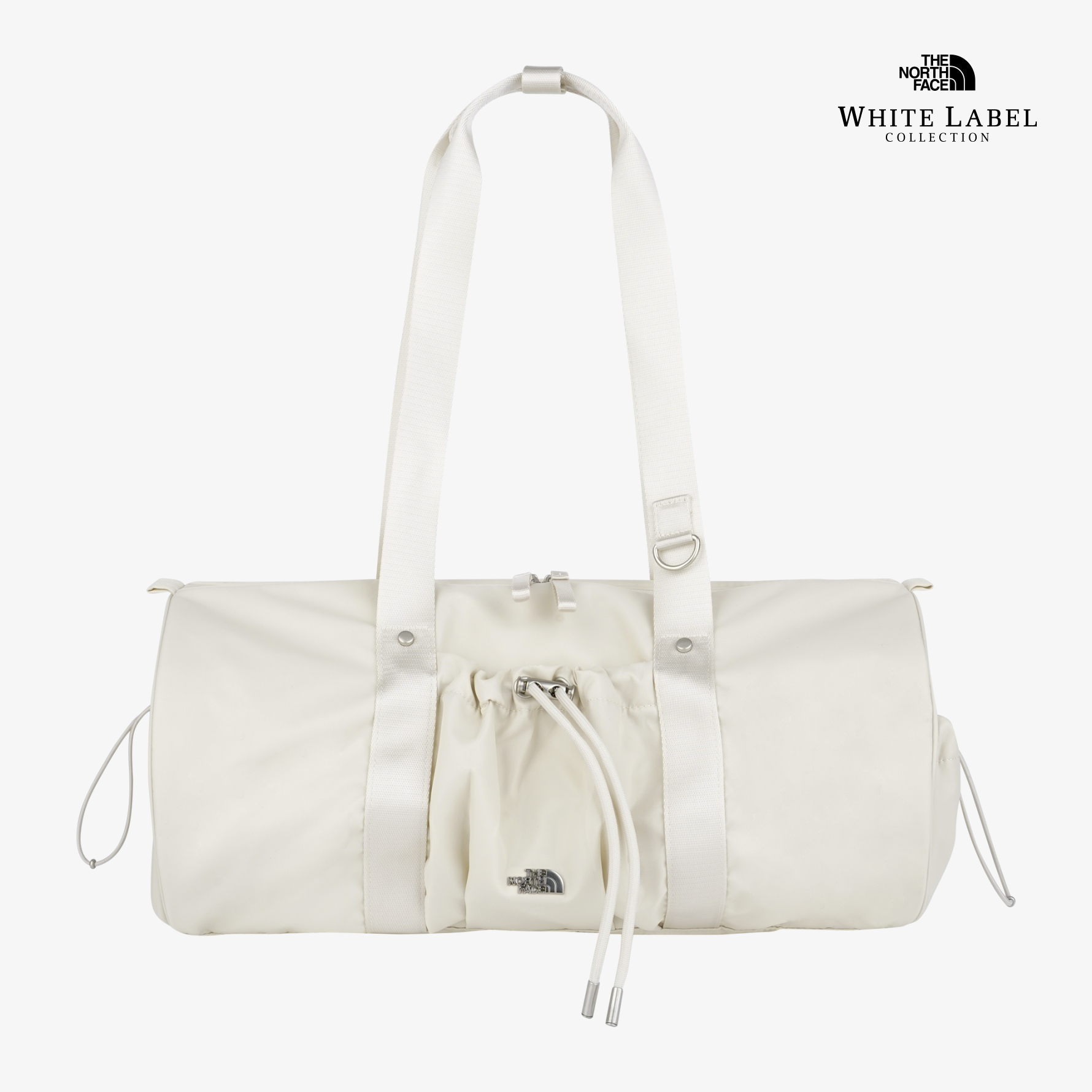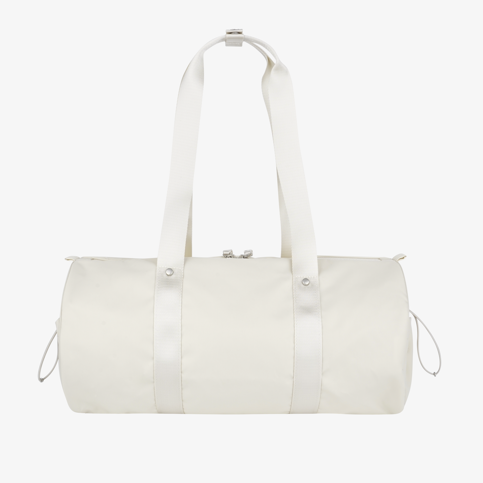 광택감 있는 나일론 트윌 소재와 부드러운 원통형 쉐입이 돋보이는 여성용 숄더 겸용 더플백입니다.
