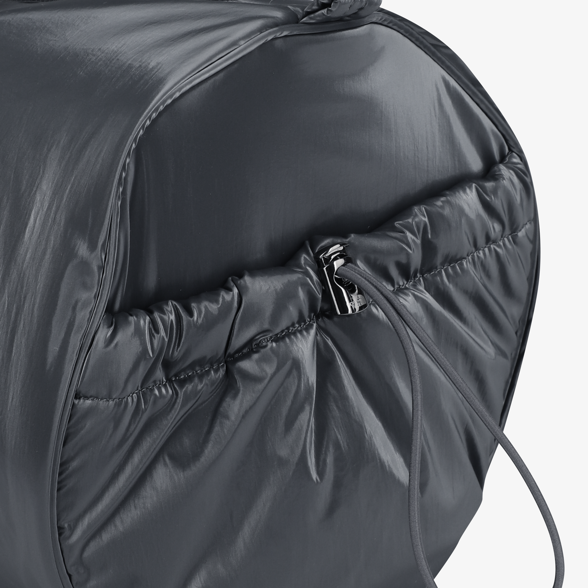 셔링 포켓과 스트링 디테일, 메탈 로고와 하드웨어 장식의 통일된 마감으로