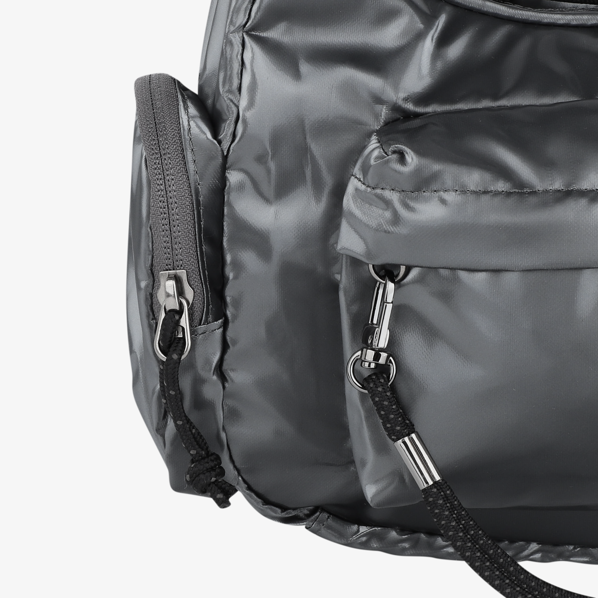 앞 포켓에 메탈 자재를 사용한 스트링 장식 플러를 사용하여 포인트감을 살려 주었습니다.