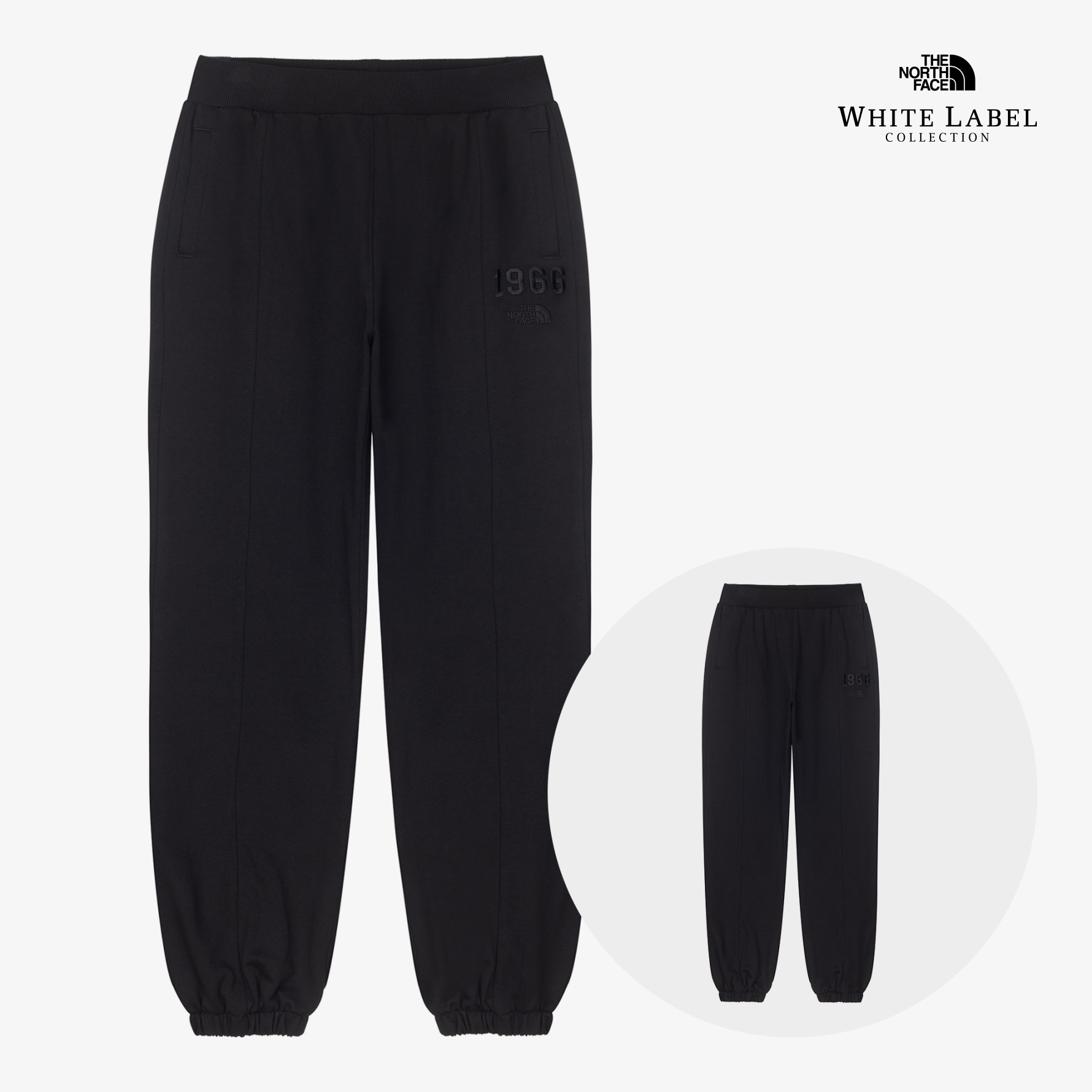 기본 쥬리 조거 바지 스타일로, 톤온톤 칼라의 로고 자수가 왼쪽 허벅지 위에 놓아져 있습니다.