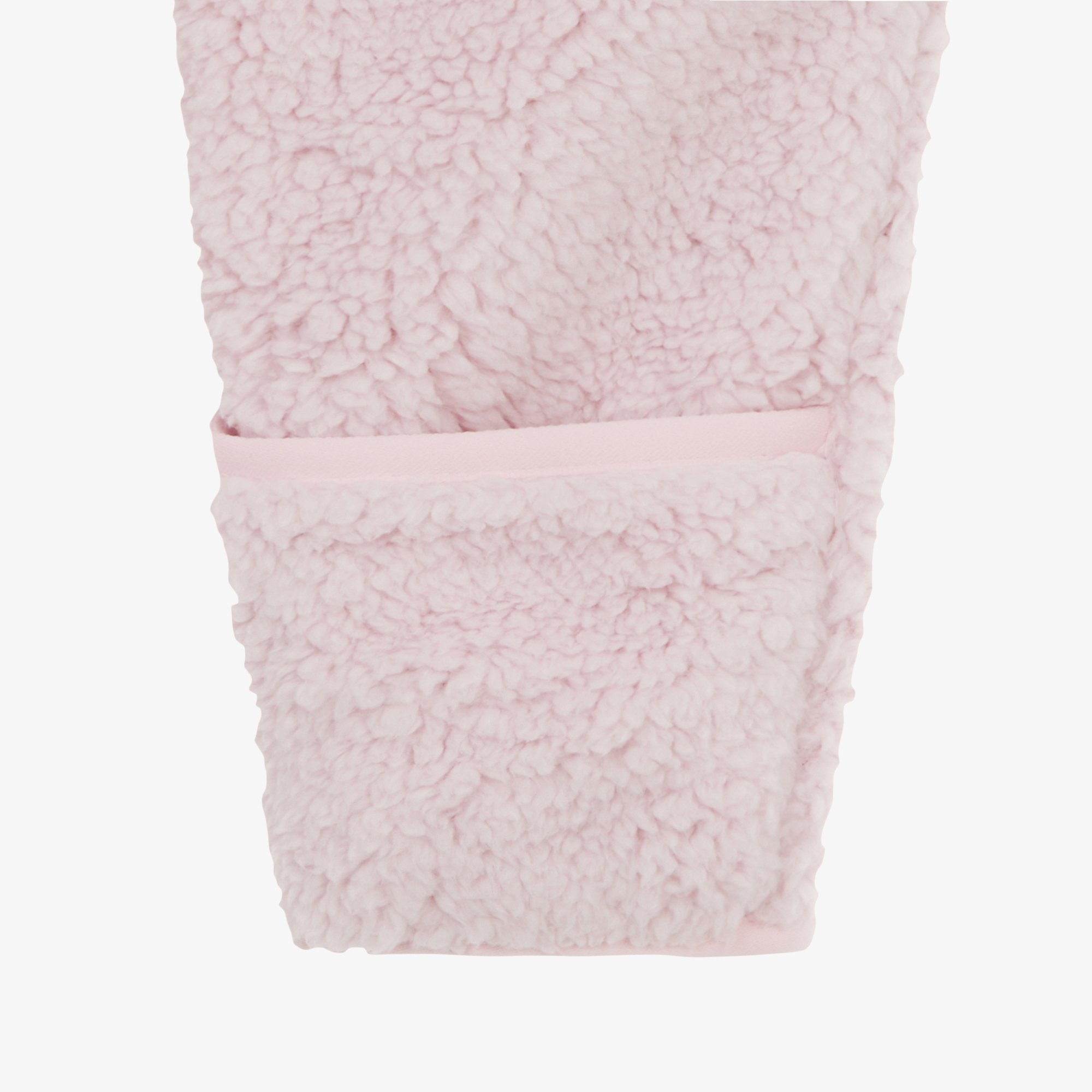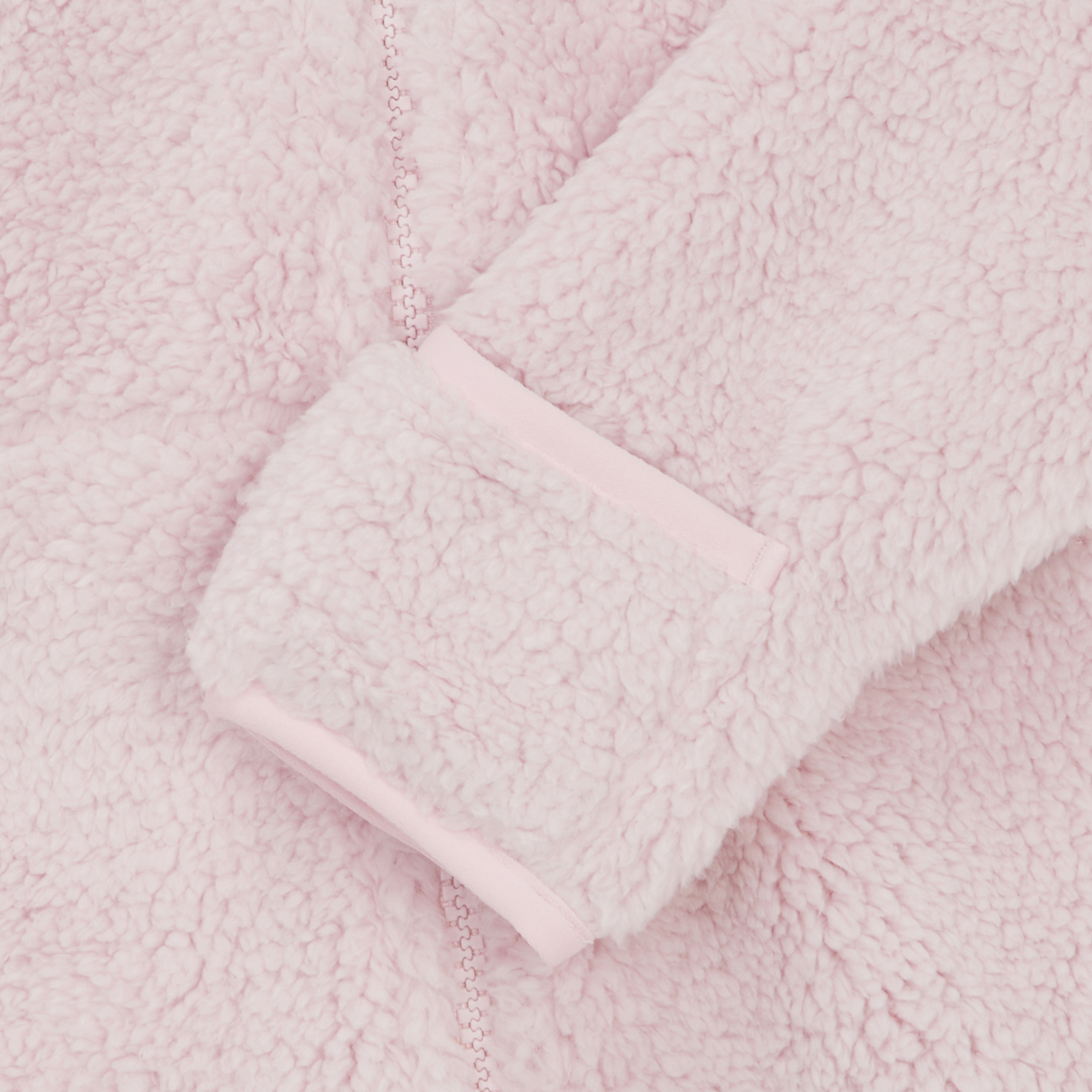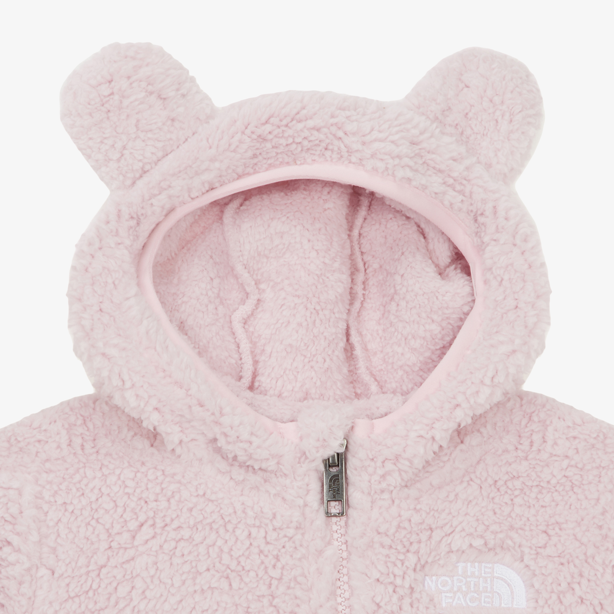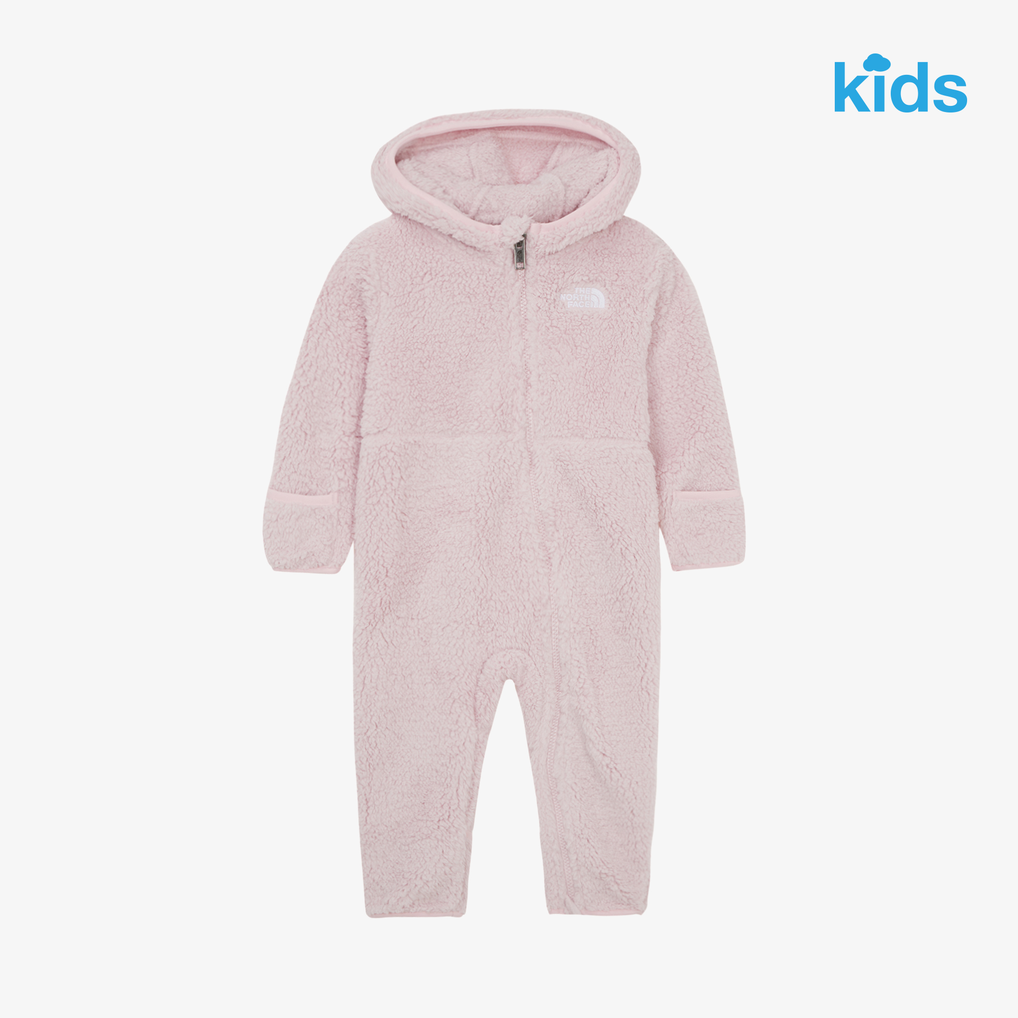 부드럽고 따뜻한 리사이클 플리스 소재를 사용한 유아용 우주복입니다.