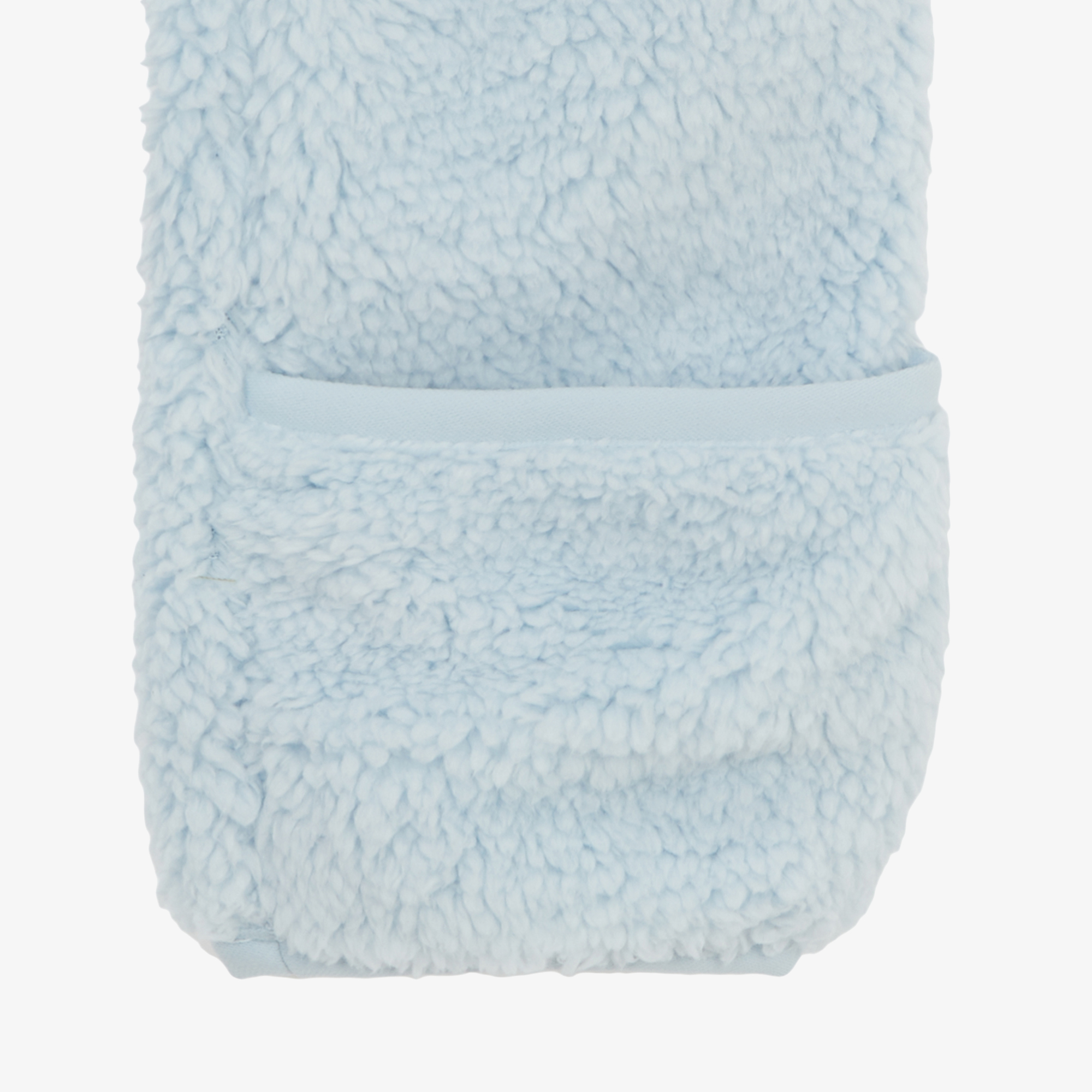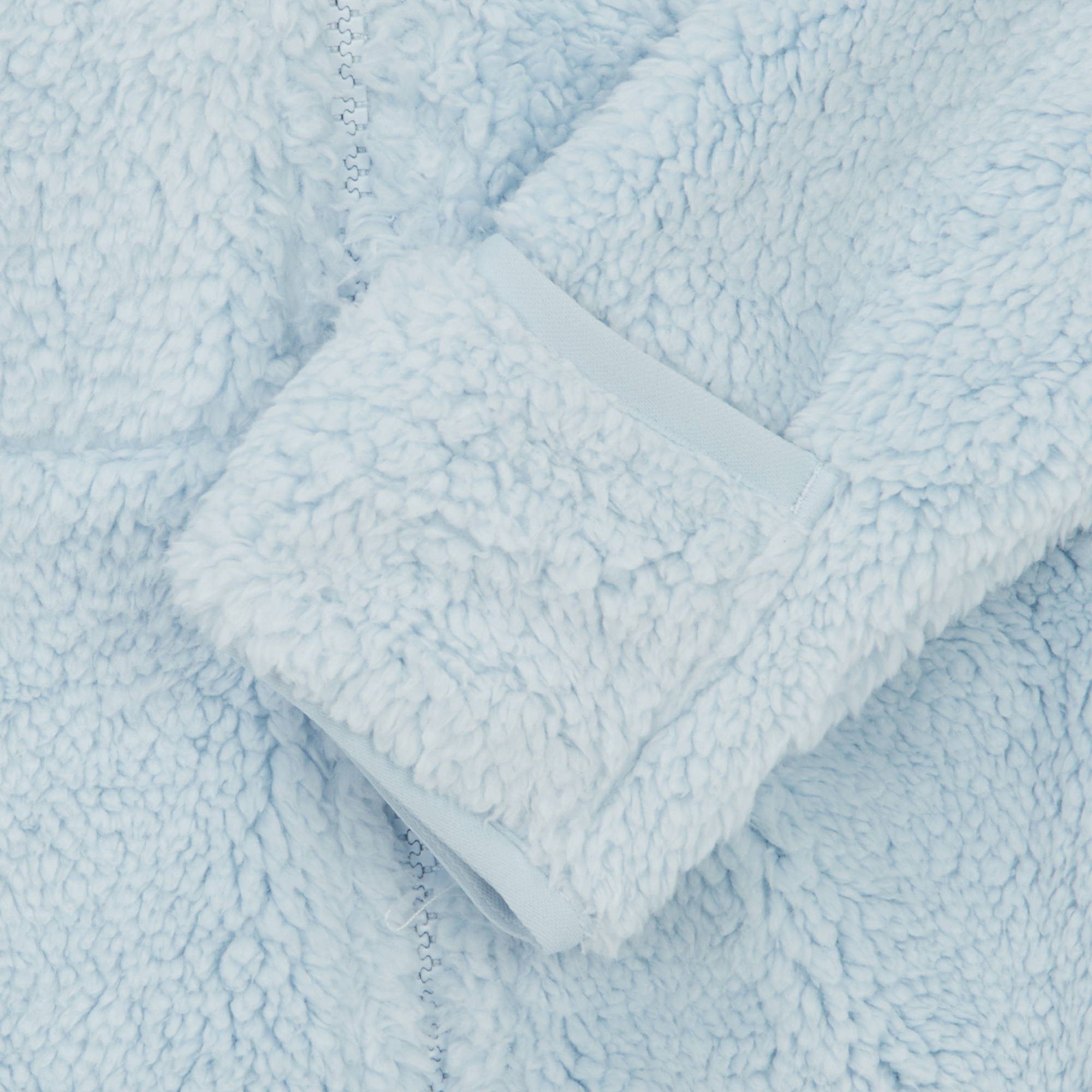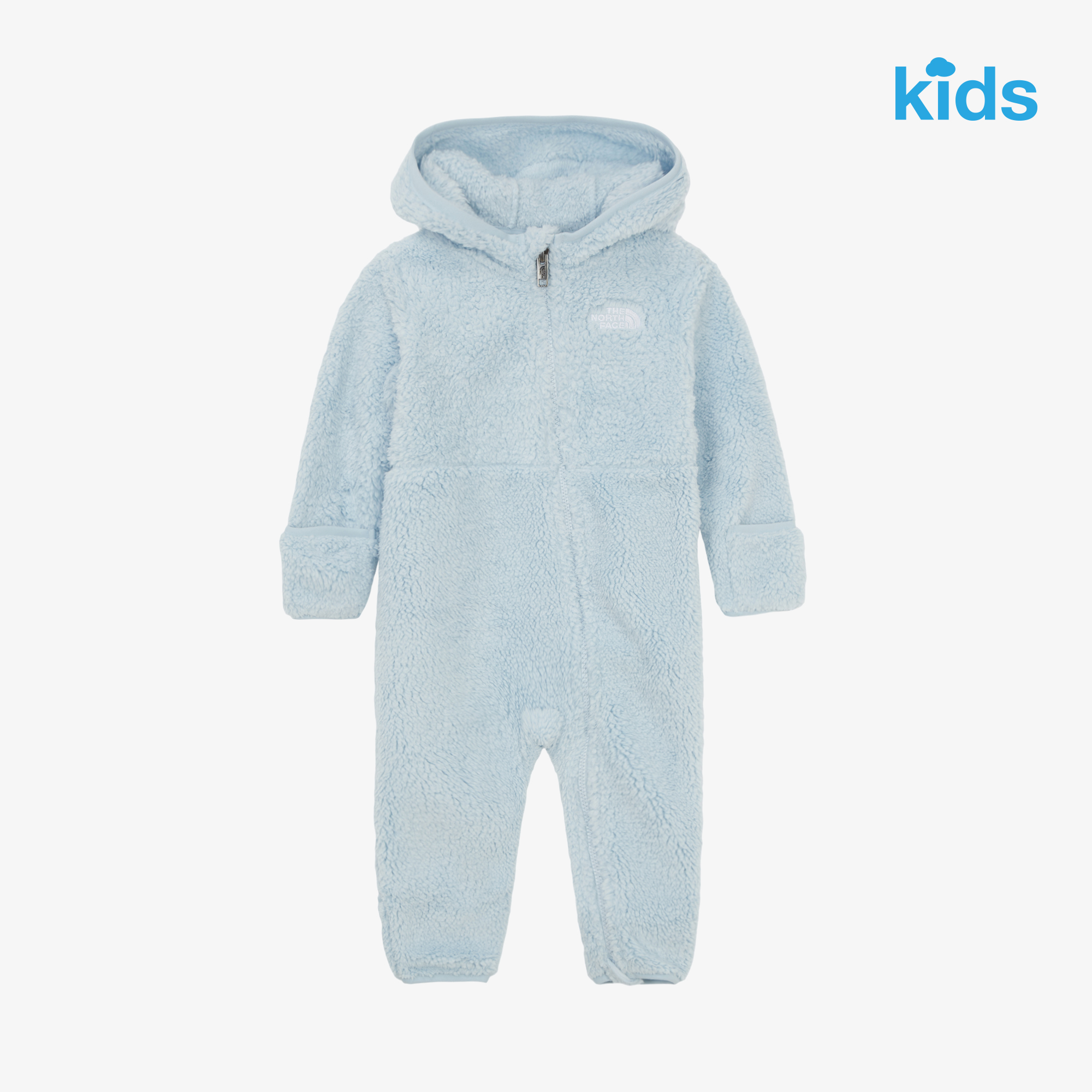 부드럽고 따뜻한 리사이클 플리스 소재를 사용한 유아용 우주복입니다.