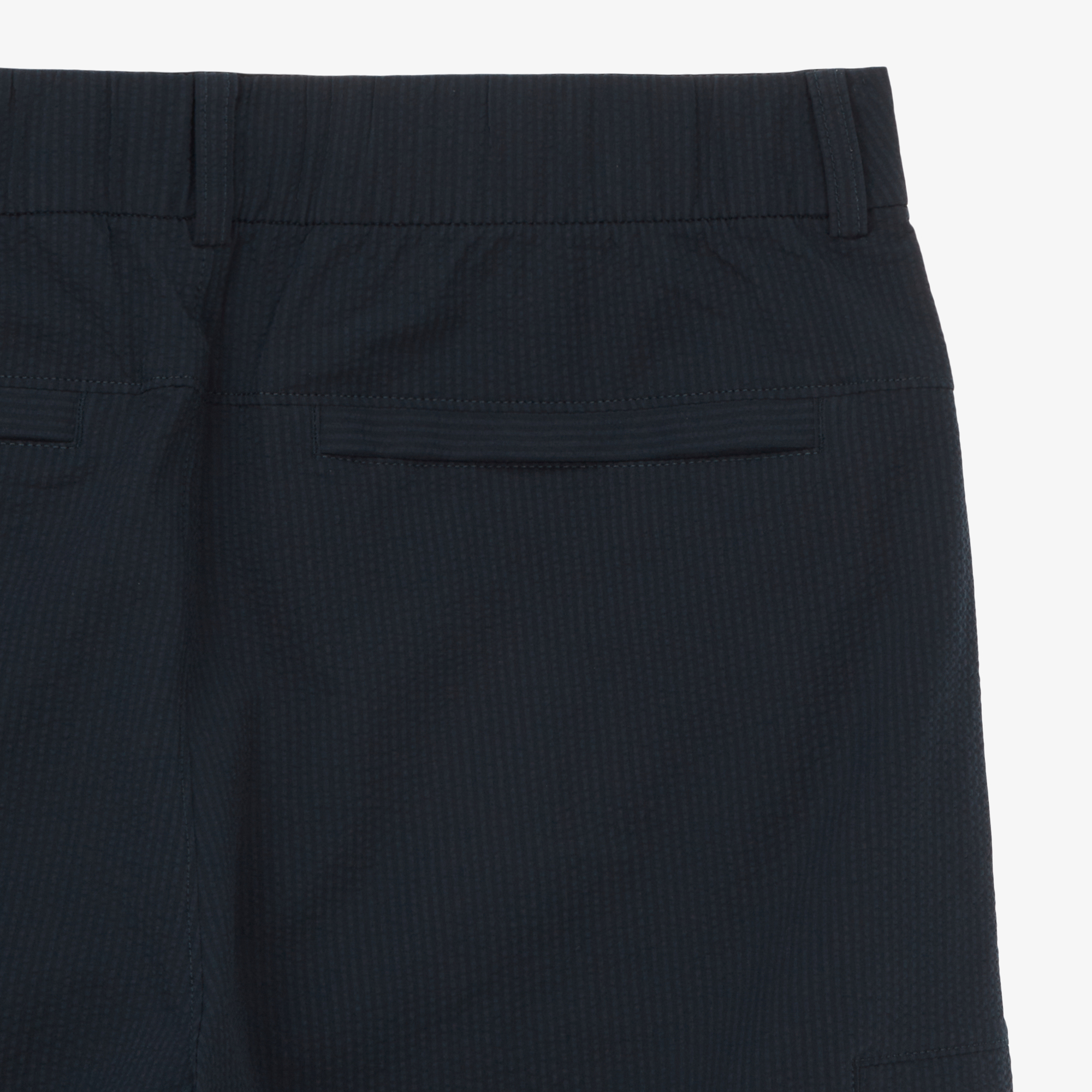 시어서커 소재로 몸에 달라 붙지 않아 시원하게 착장할 수 있으며, 따로 스판사가 들어가지 않지만 시어서커 소재 특성으로 스트레치 성이 좋아 활동성이 용이합니다.