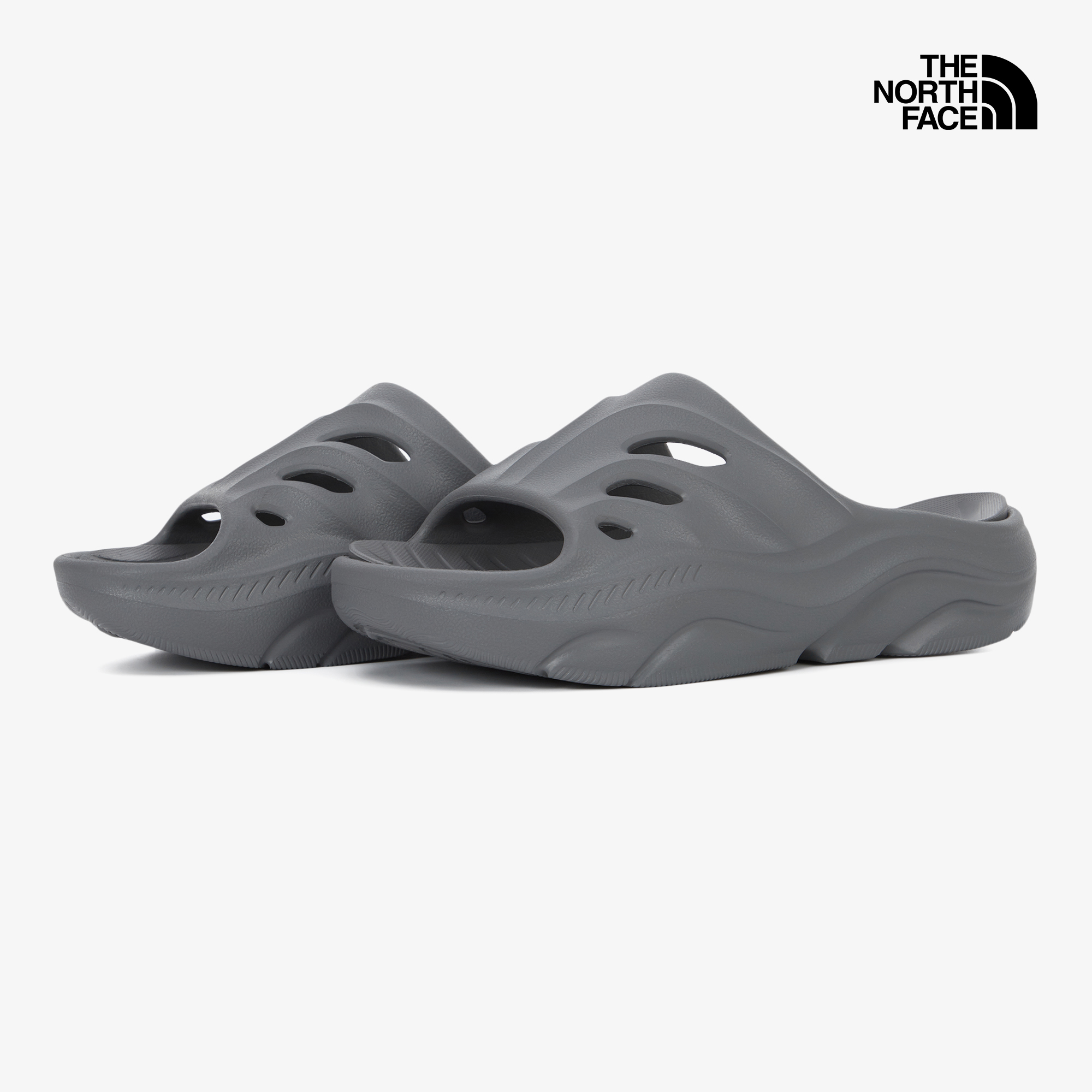 곡선형 모양의 갑피 디자인으로 피오르 협곡 형태에서 영감을 받은 디자인이며 노스페이스 로고인 돔을 모티브한 갑피의 홀이 통기성과 배수에 도움을 줍니다.