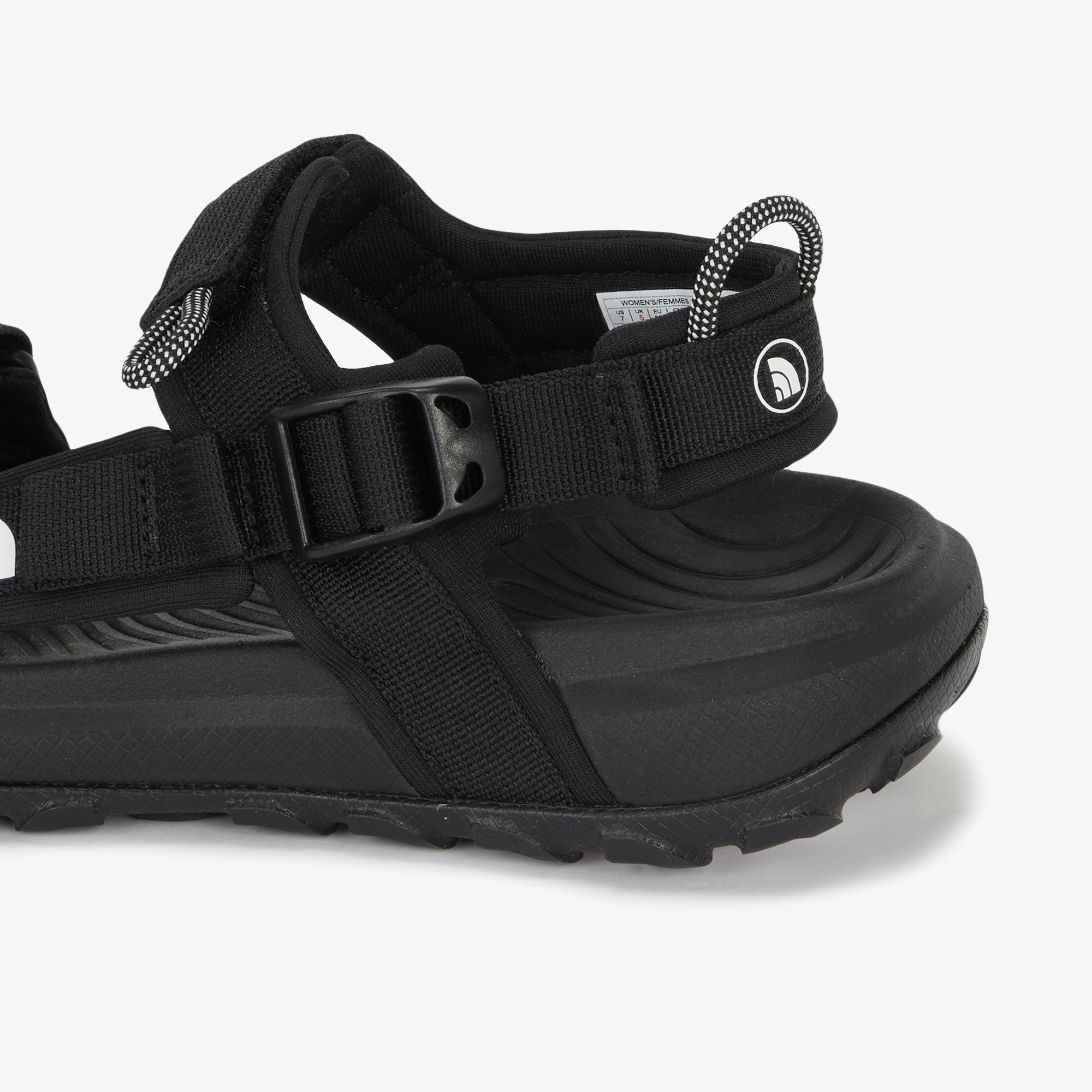 슬라이더 버클이 있는 스트랩으로 발뒤꿈치 부분을 조정 가능합니다.