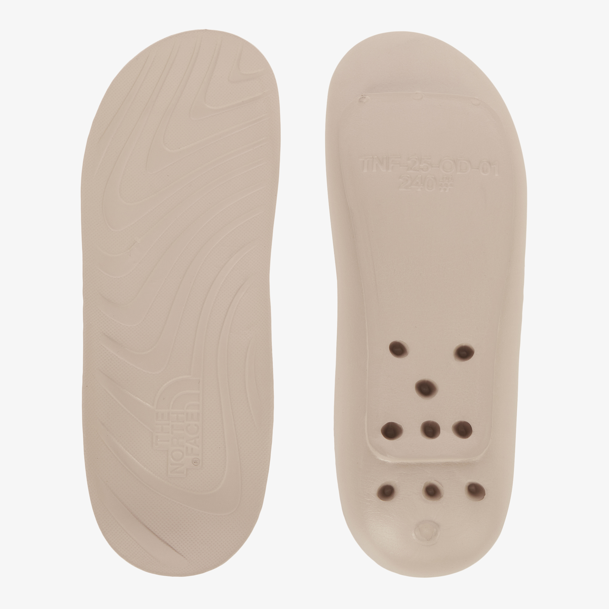 곡선형 모양의 갑피 디자인으로 피오르 협곡 형태에서 영감을 받은 디자인이며 노스페이스 로고인 돔을 모티브한 갑피의 홀이 통기성과 배수에 도움을 줍니다.