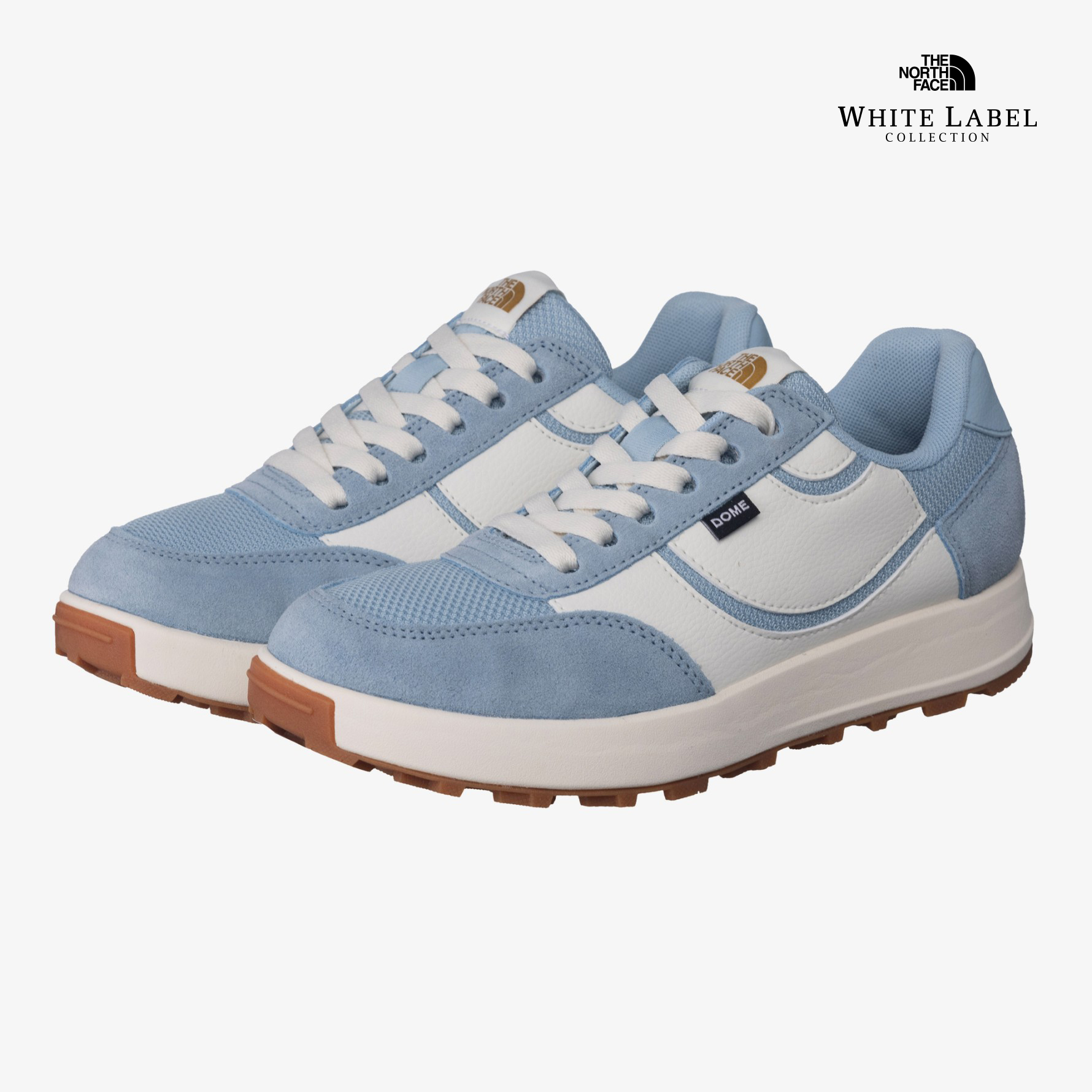 화이트라벨 단독상품으로 노스페이스 돔 로고를 갑피 측면에 크게 패턴화하여 디자인한 데일리 스니커즈 입니다.