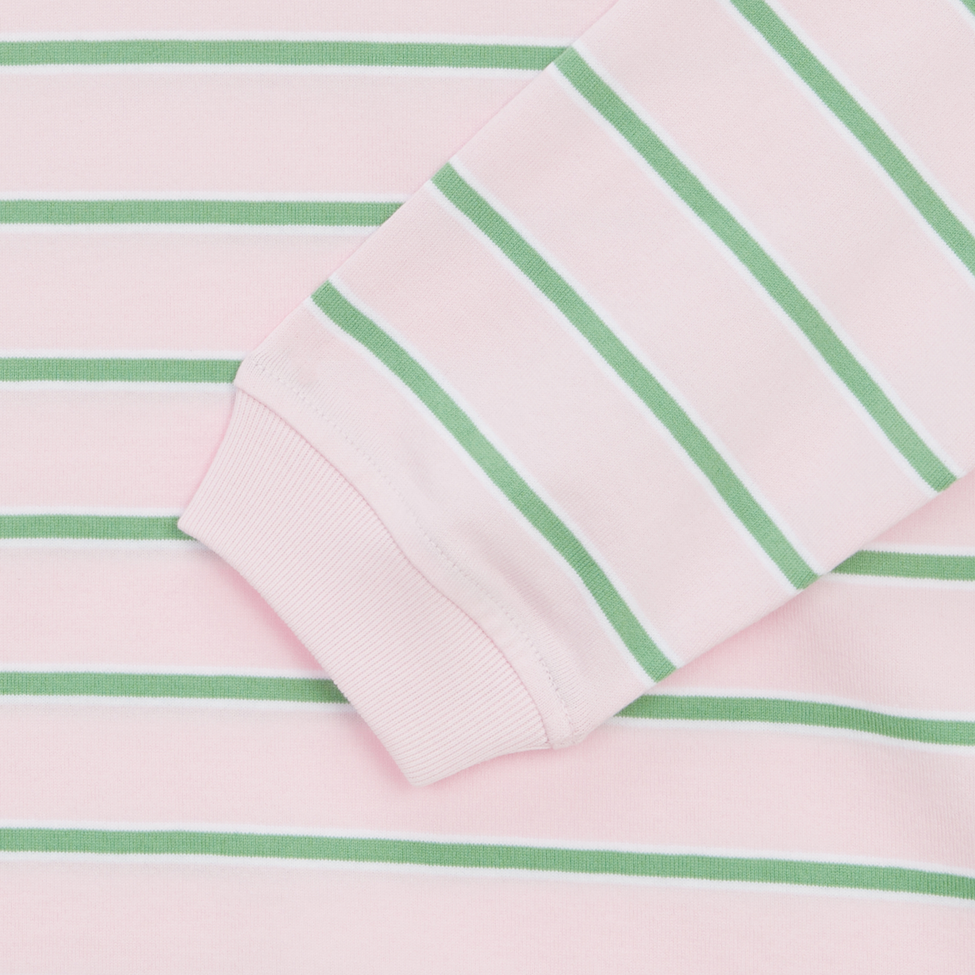 COTTON 100% 컬러풀한 멀티 스트라이프 원단으로 제작된 루즈핏 긴팔 라운드 넥 티셔츠 입니다.