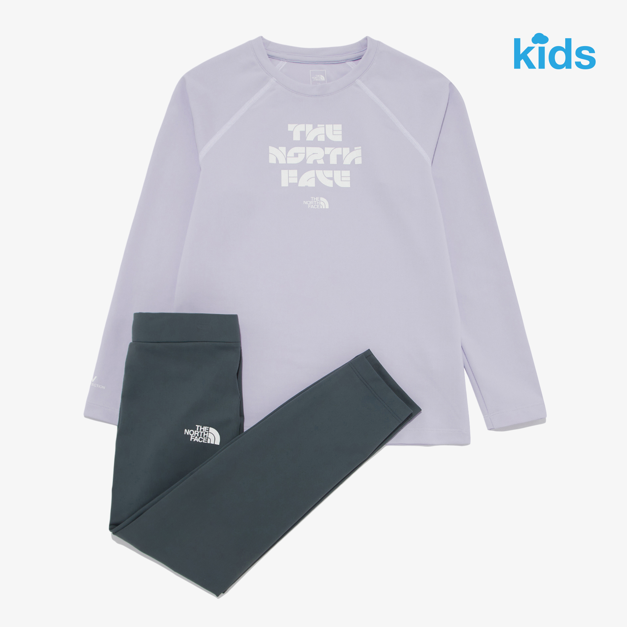 SUMMER 그래픽으로 포인트를 준 라그란 래쉬가드 티셔츠-레깅스 세트입니다.
