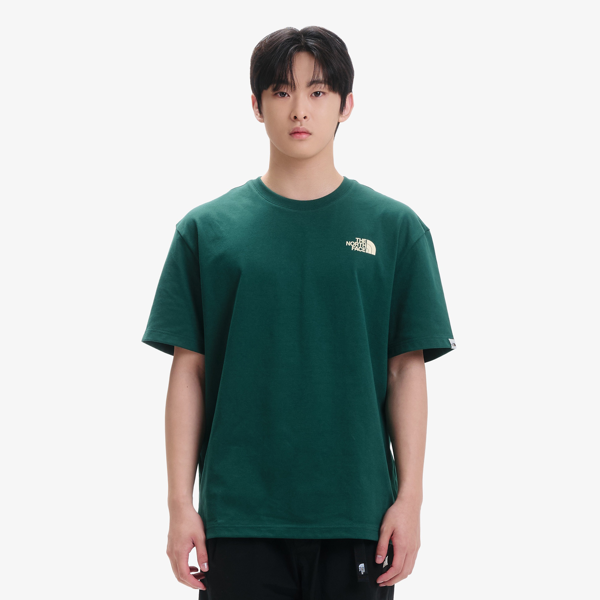 더블 메시 소재를 사용한 루즈 핏 라운드 반팔 제품입니다.