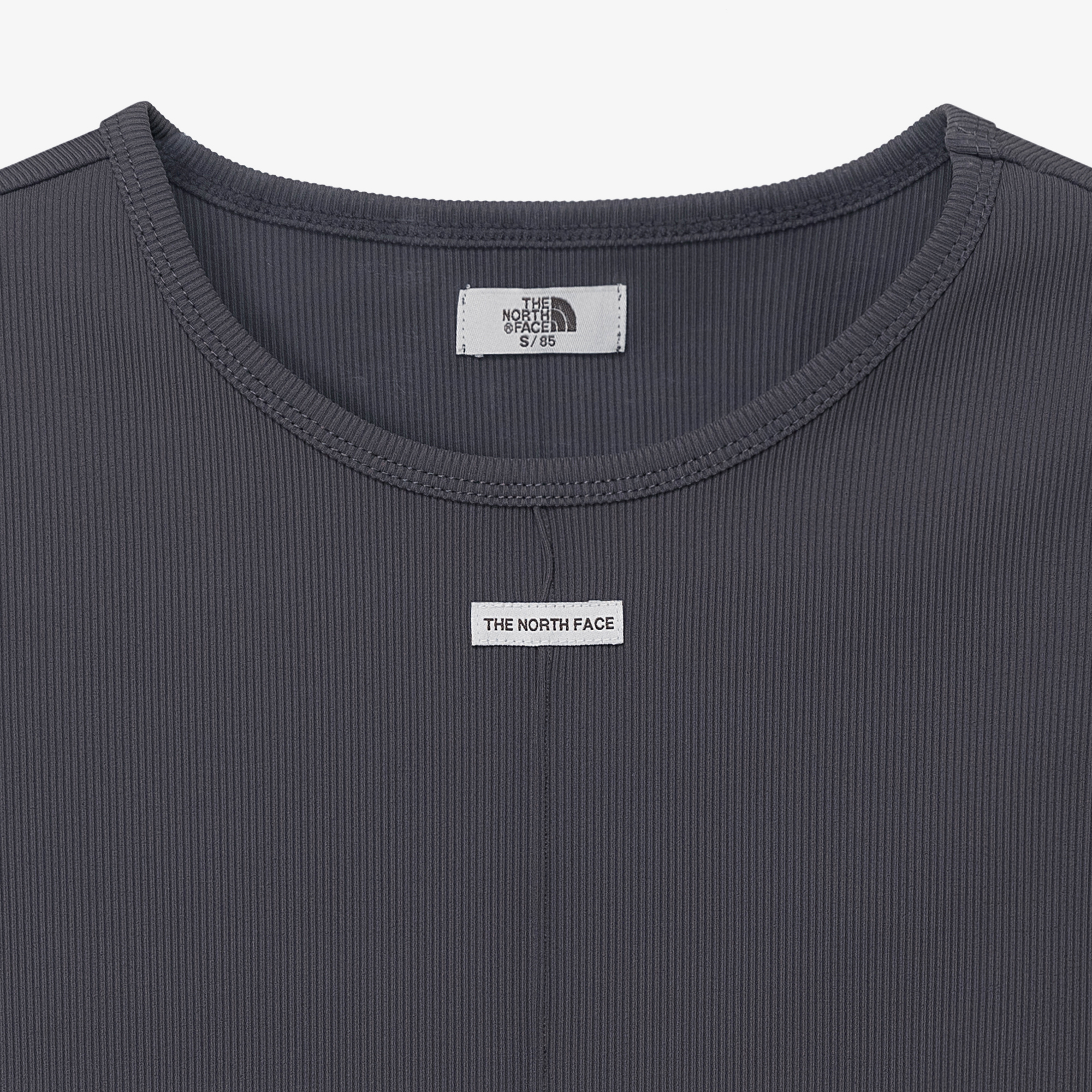 슬림핏의 여성 전용 반팔 티셔츠 스타일로, 앞 중앙에 노스페이스 레터링이 되어 있는 라벨링으로 포인트를 준 여성 기본 이너 스타일입니다.
