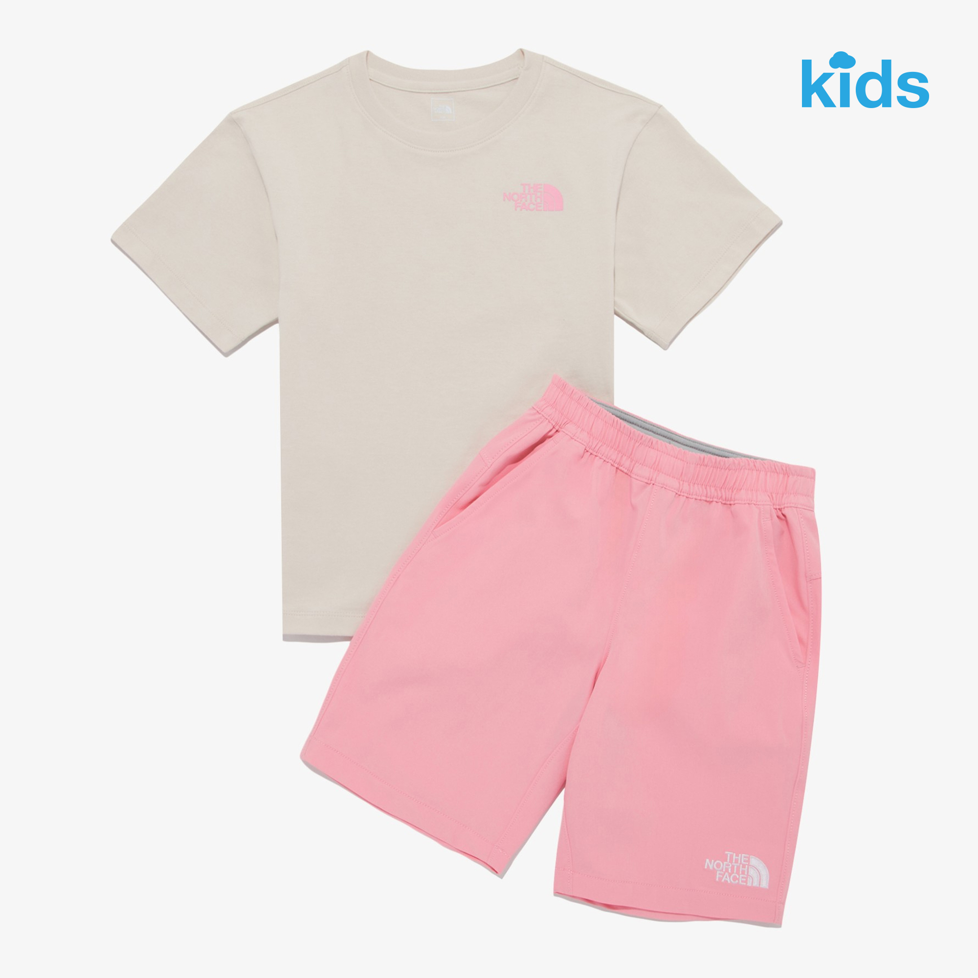 캠핑 모티브의 그래픽 포인트의 반팔 티셔츠와 베이직한 디자인의 하의로 구성된 SET 아이템입니다.