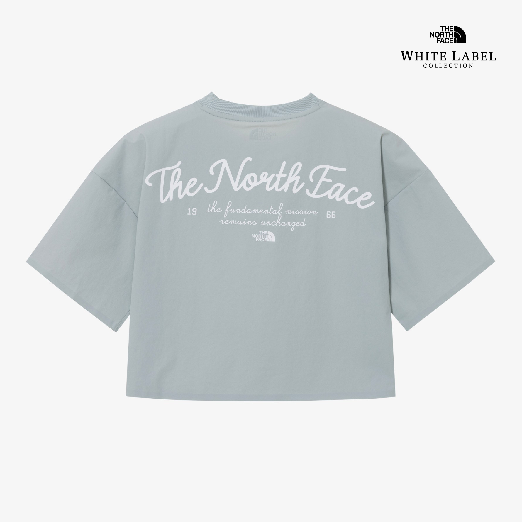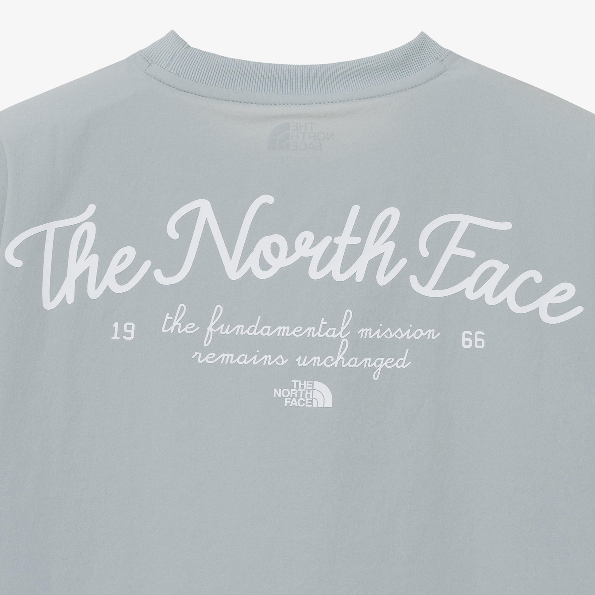 앞판 중앙에 노스페이스 로고와 등판에 여성스러운 레터링 그래픽이 있습니다.