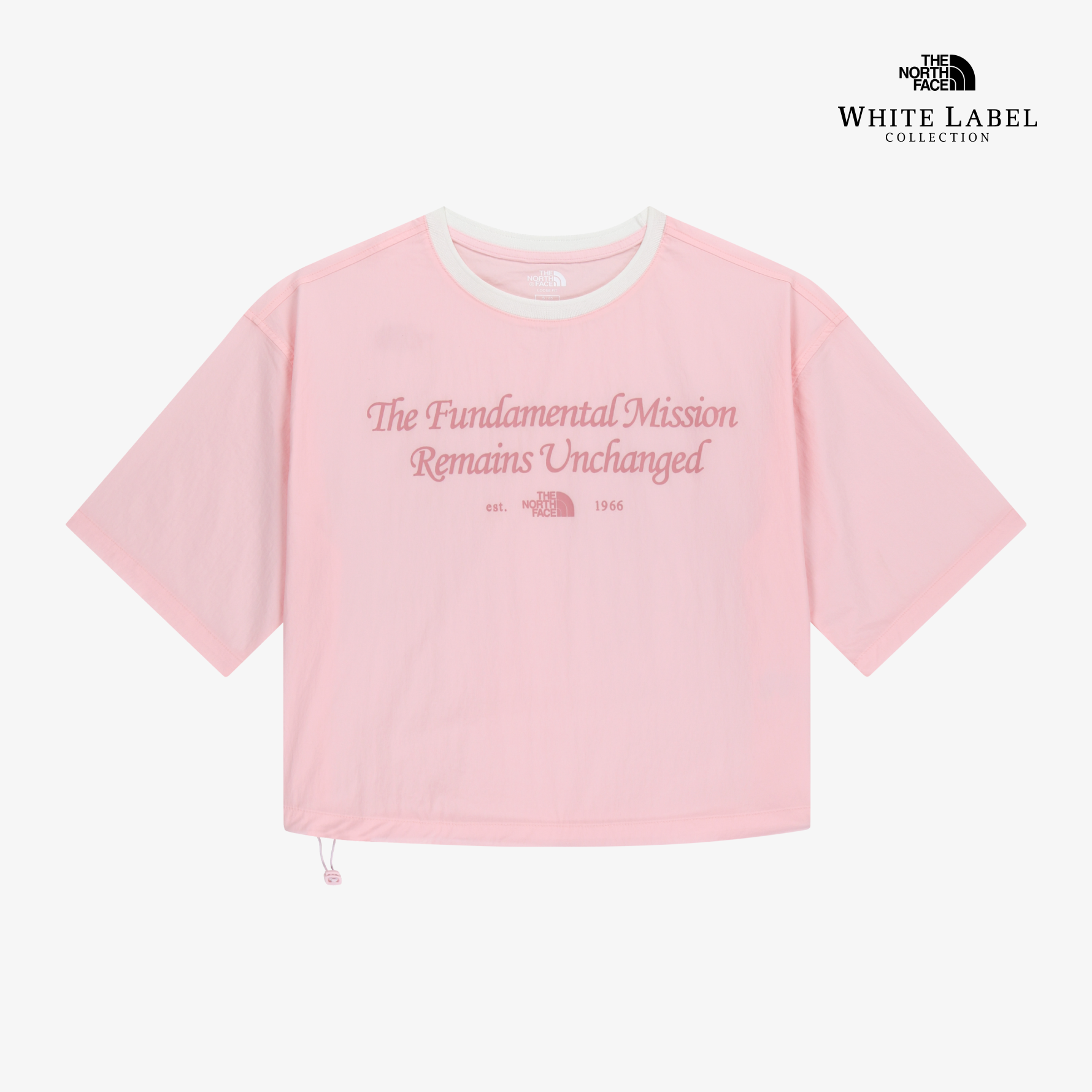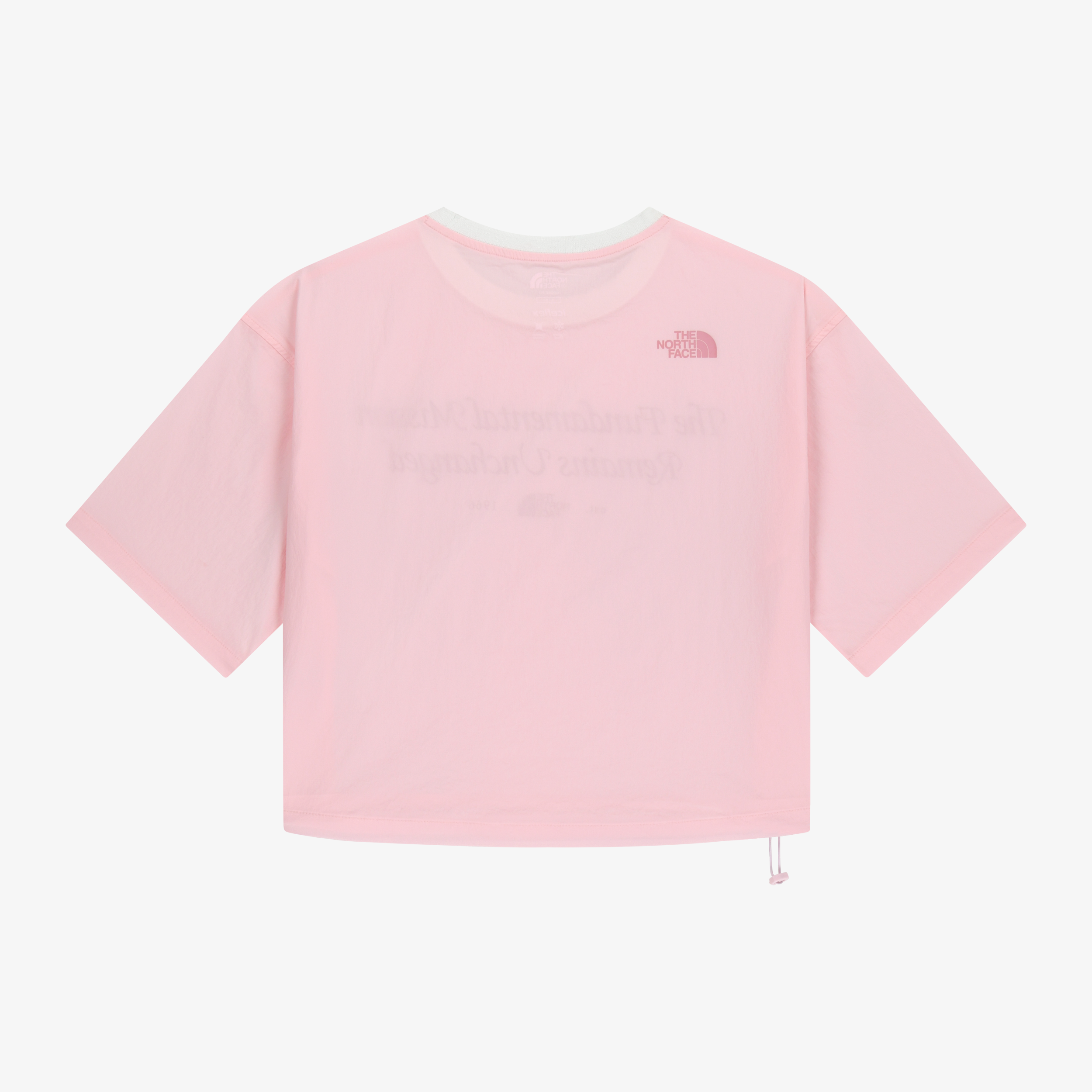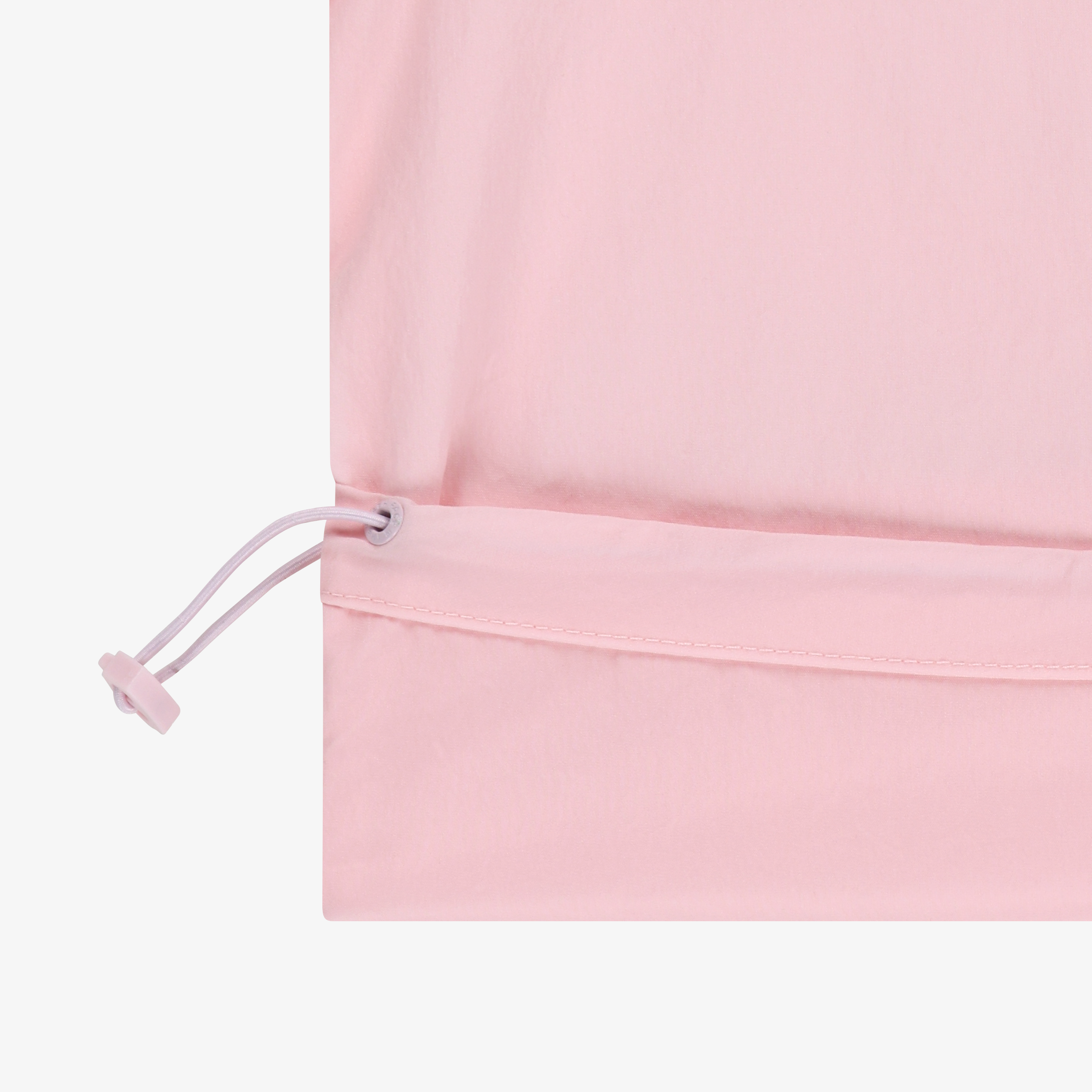 밑단에는 스트링, 스토퍼가 있어 조임 기능이 가능하며, 앞에 레터링으로 포인트를 주었습니다.