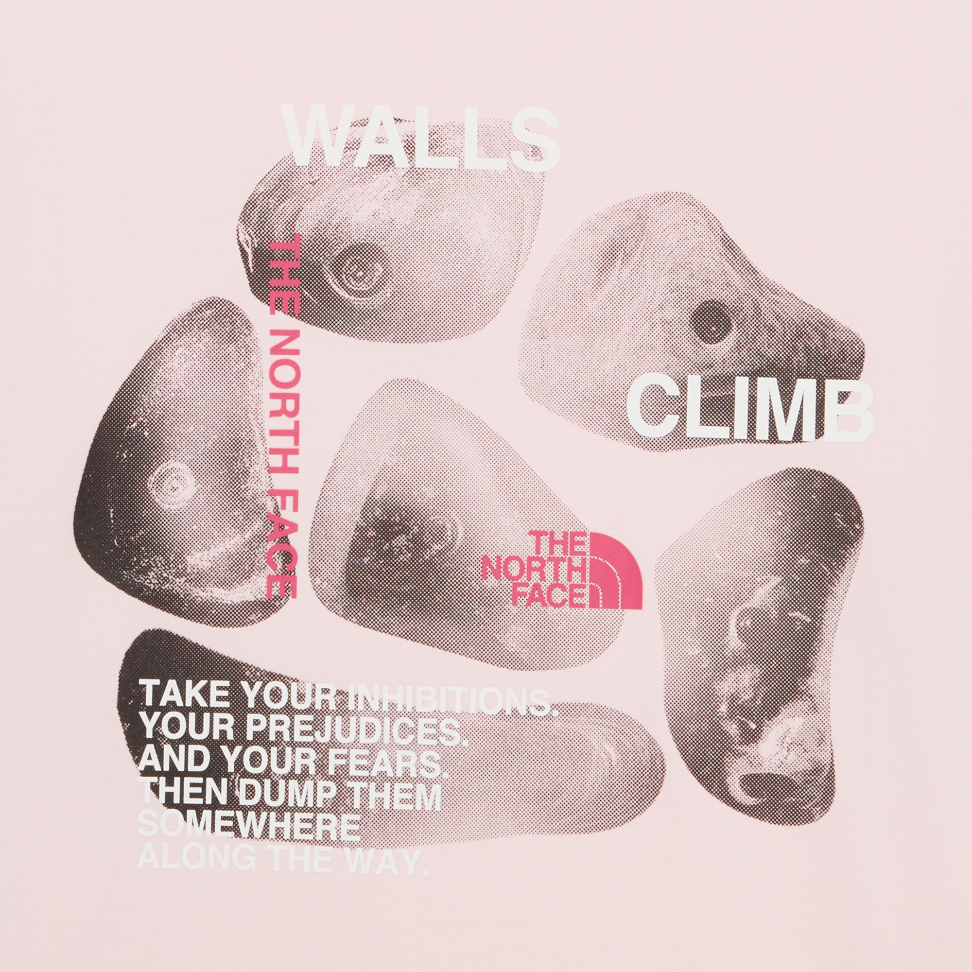 암장의 다양한 홀드 모티브와 WALLS & CLIMB 레터링으로 뒷판 그래픽을 진행 하였으며