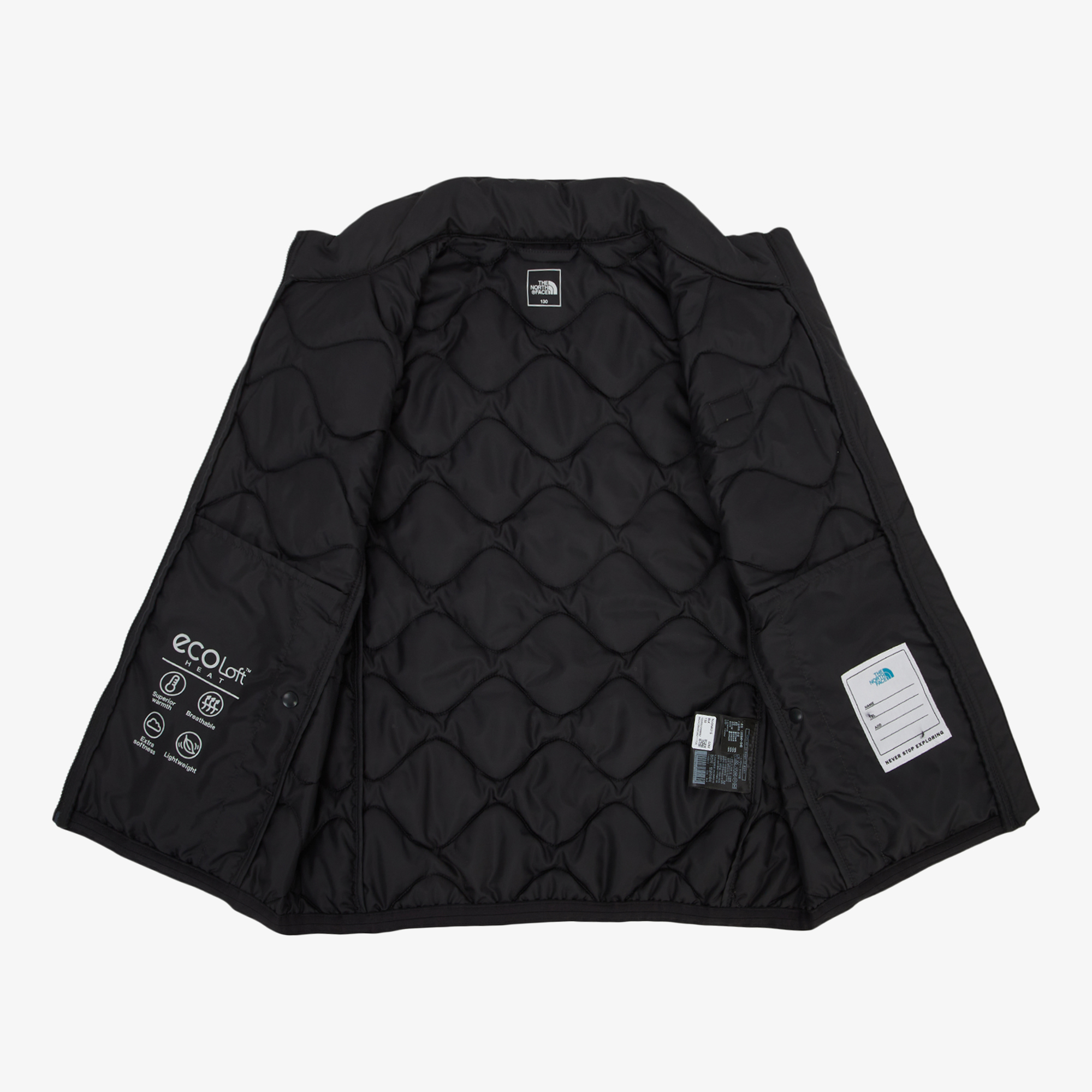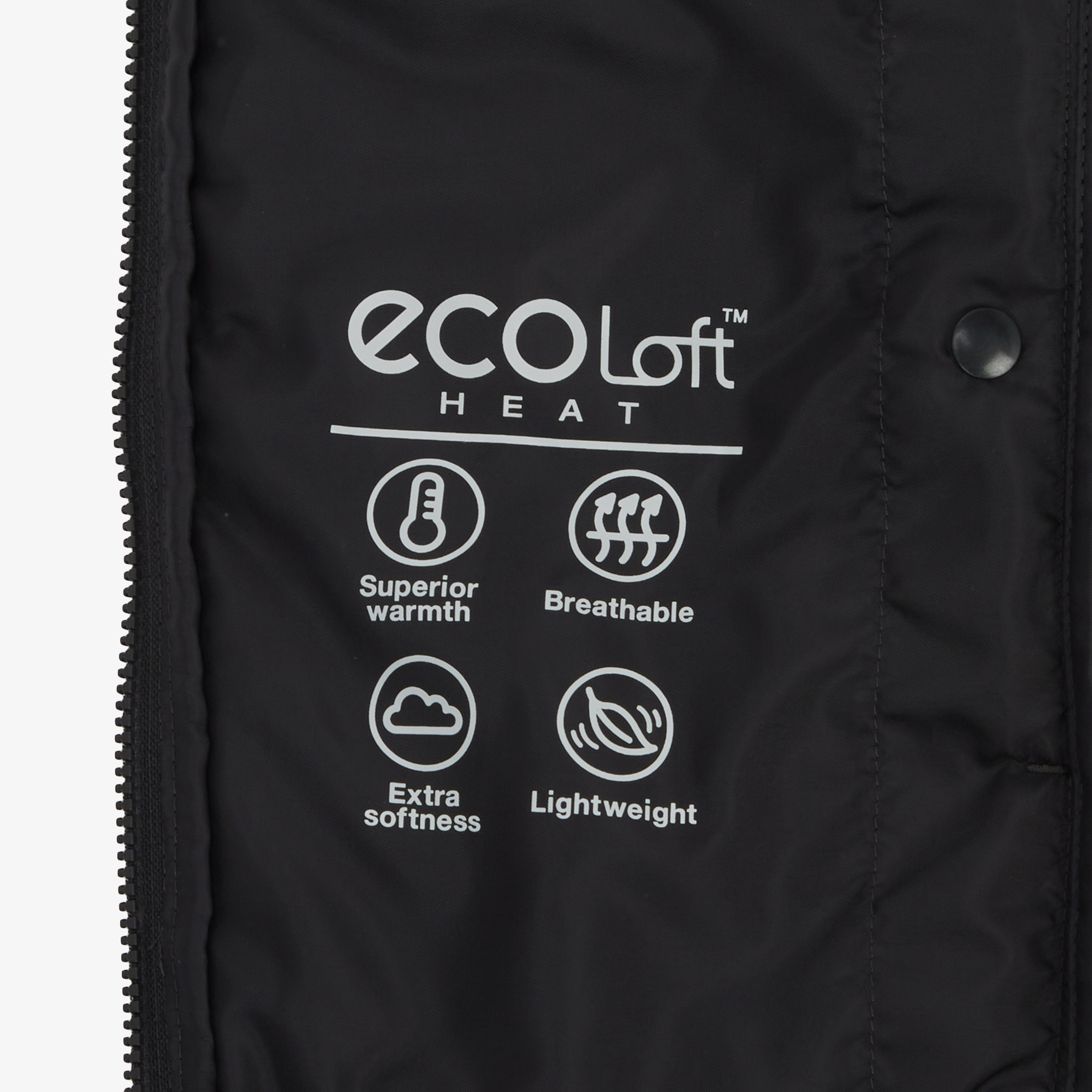 가슴 와펜과 지퍼풀러로 포인트를 주었고, ECOLOFT 충전재를 사용하여 가볍고 볼륨감이 좋습니다.