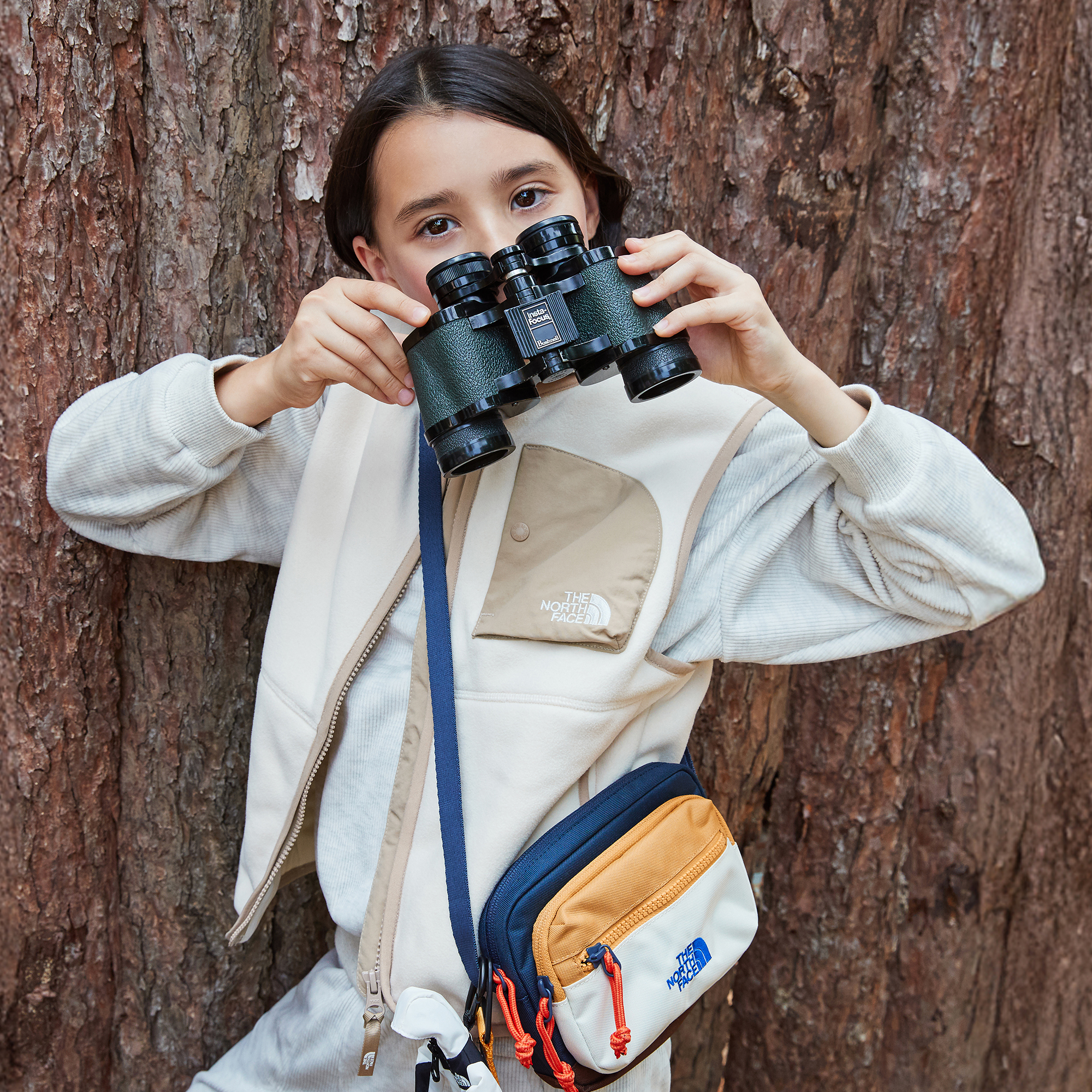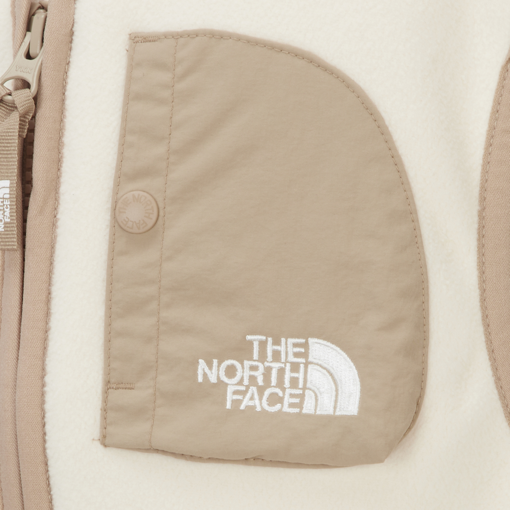 V넥의 플리스 베스트로 FLEECE BONDING BOA 소재에 하프돔 모양의 우븐 소재 가슴 포켓으로 포인트를 주었습니다.